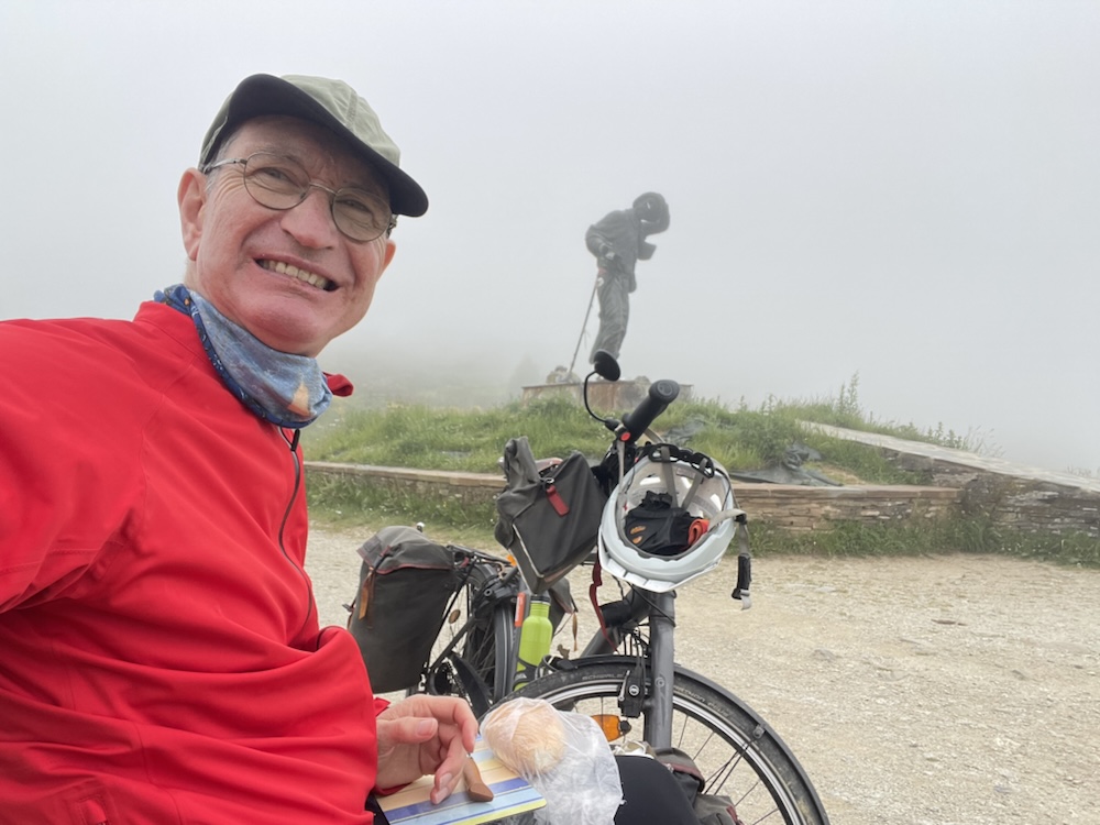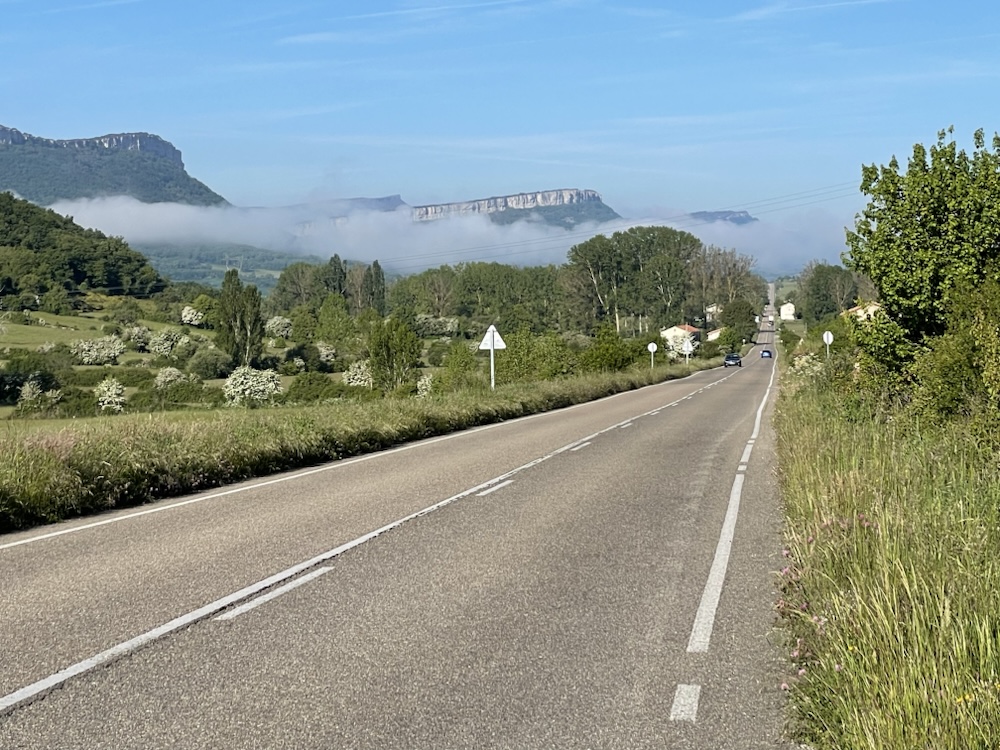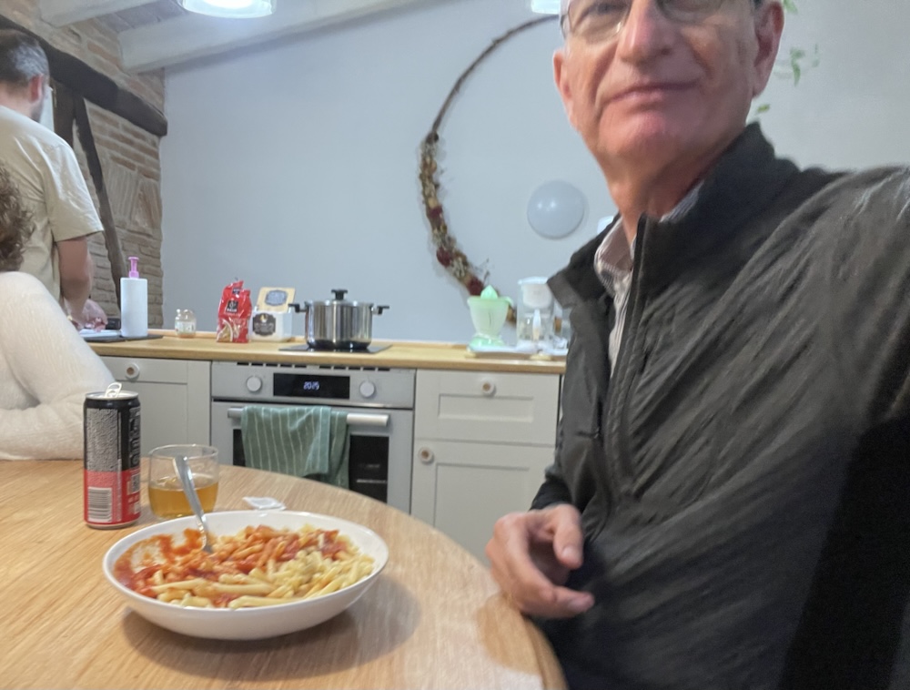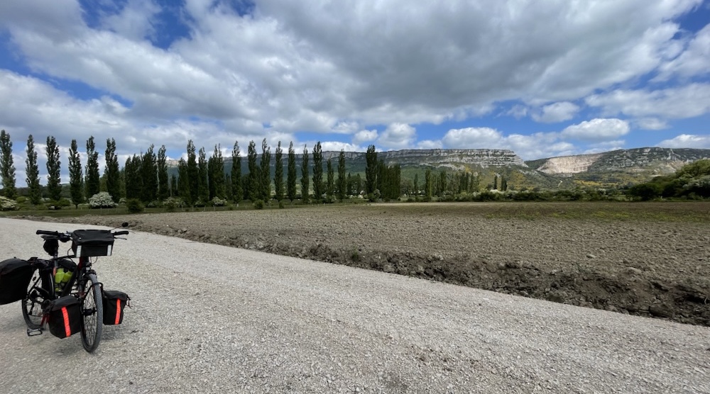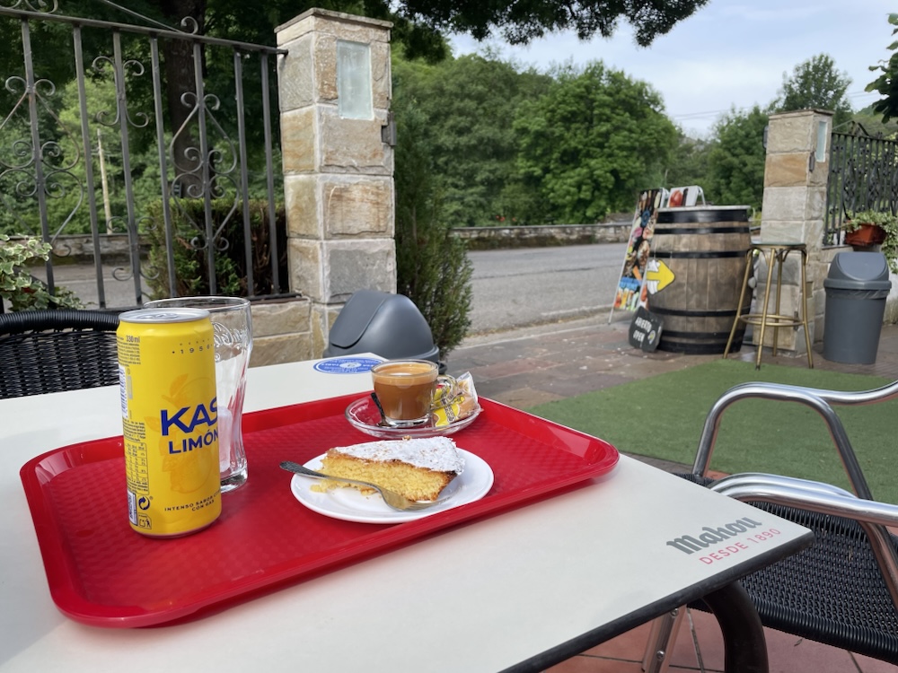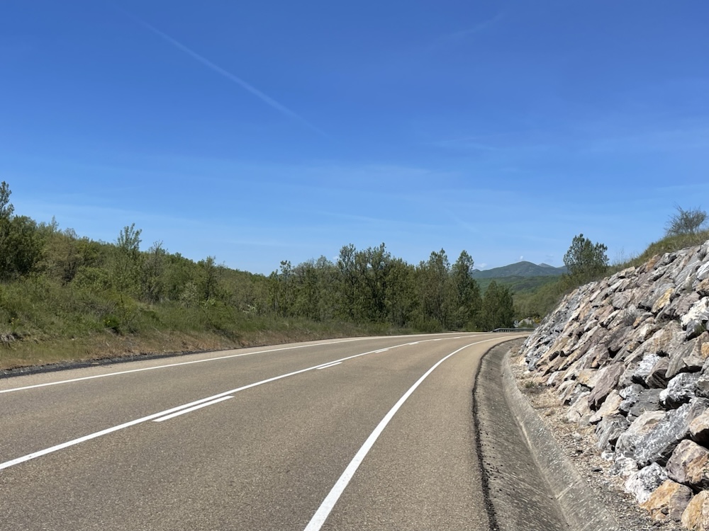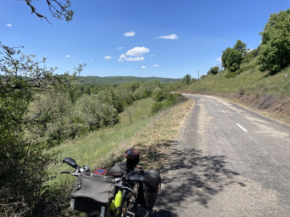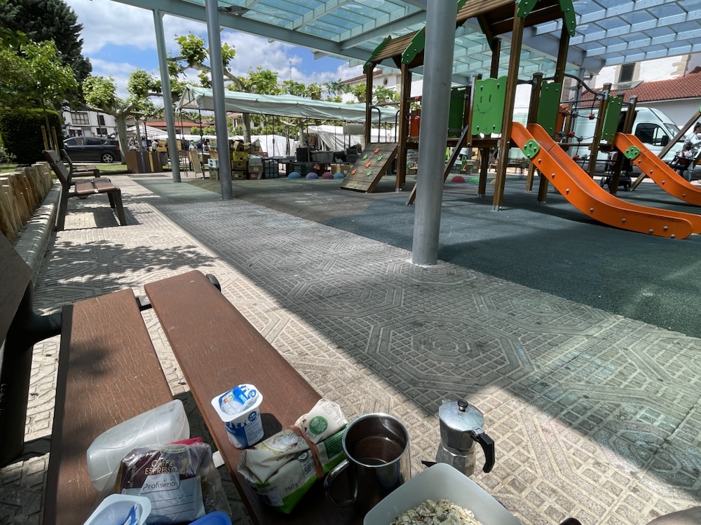 12.58 Uhr – Das erste Müsli, Rapunzel Original Müsli mit Apfelstücken und einem kleinen Naturjoghurt, war ganz vorzüglich. Inzwischen rasen wir durch die endlosen Baumplantagen der Les Landes auf dem Weg nach Dax. Durch diese Gegend sind wir vor zwei Jahren auf dem Weg nach San Sebastián lange geradelt, siehe Tour 2023.