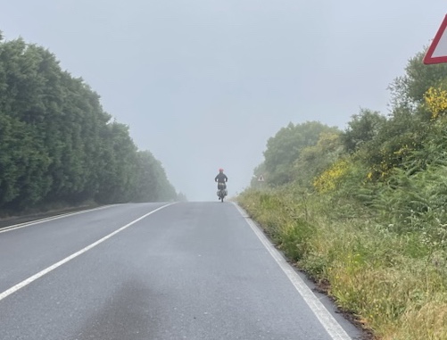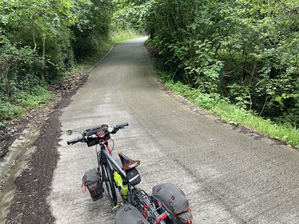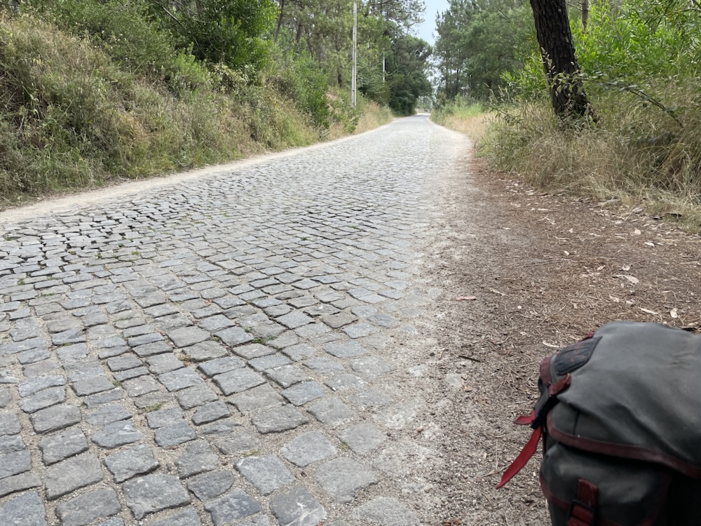 10.08 Uhr – Kopfsteinpflaster ohne Ende. Ich brauche wirklich Geduld. Aber im Wald ist der Gegenwind nicht ganz so stark. Das trübe Wetter schlägt mir etwas auf die Stimmung.