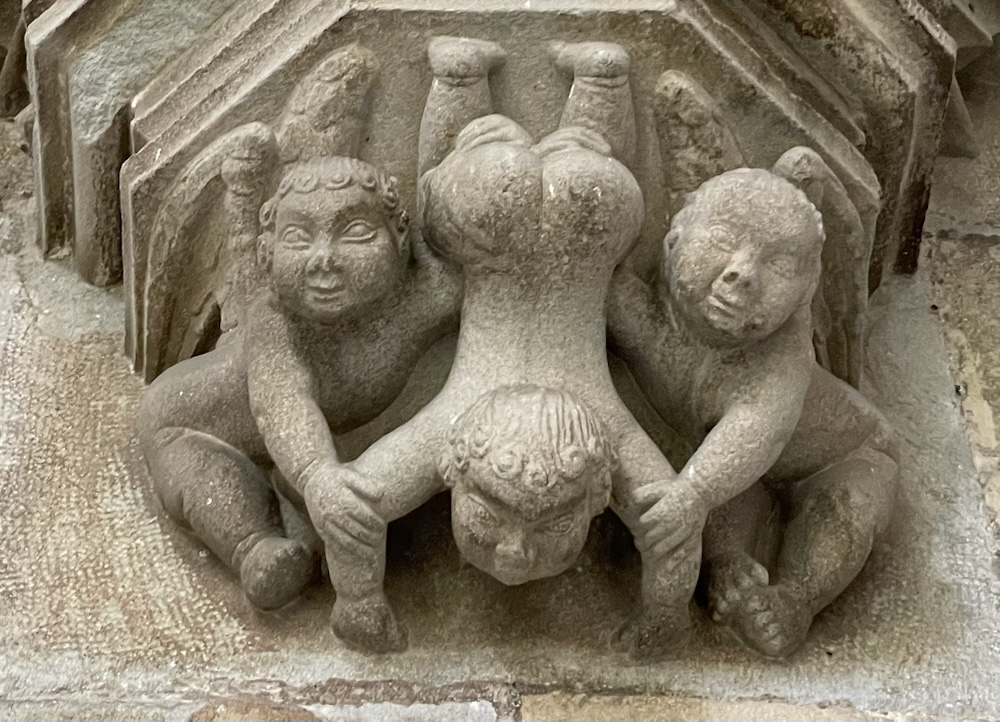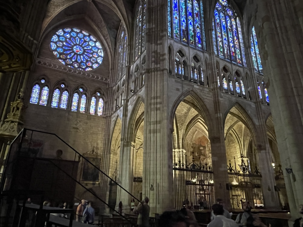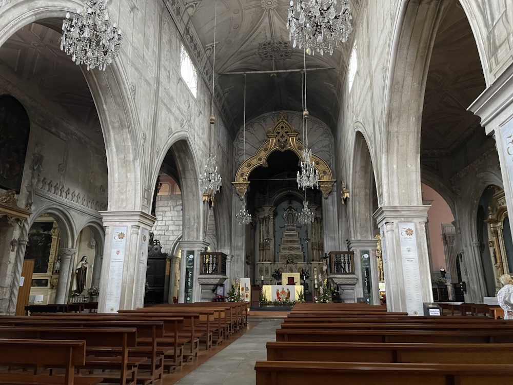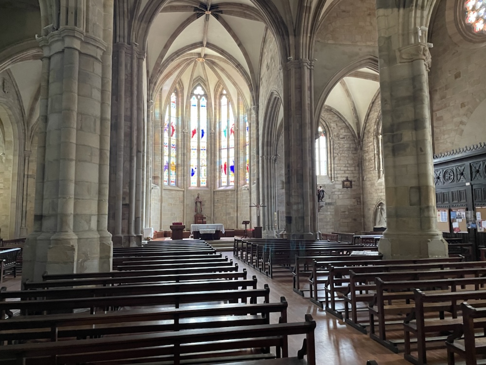 Es gibt in den Seitenschiffen keine Fenster und über den Arkaden nur sehr kleine. Der Chor hat ebenfalls nur sehr kleine Fenster rechts und links.
