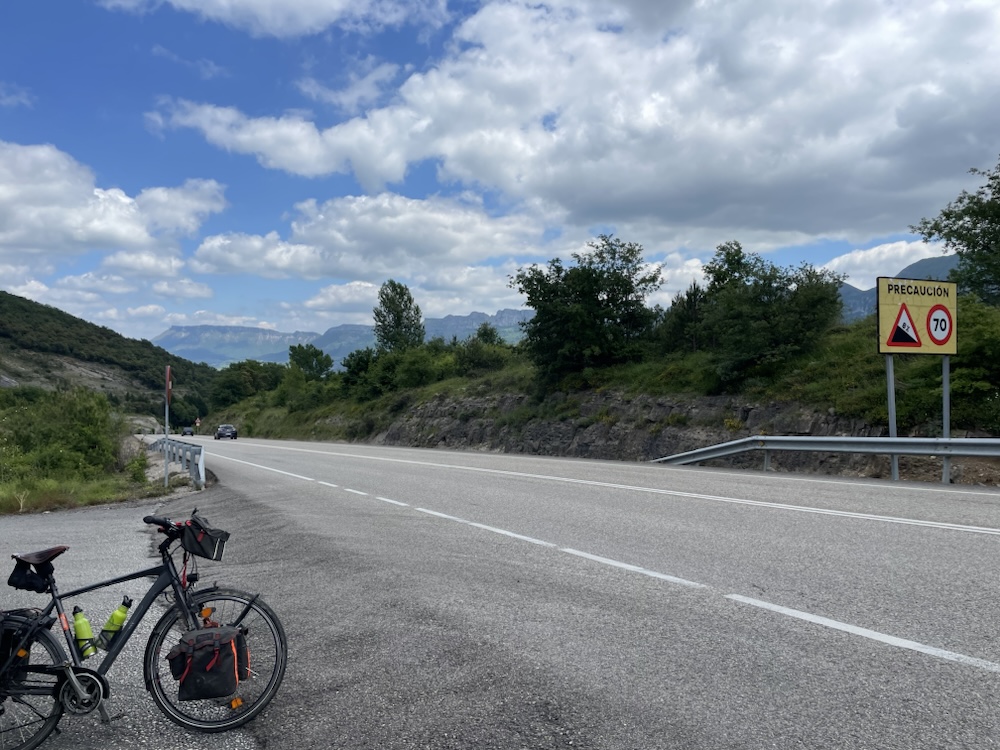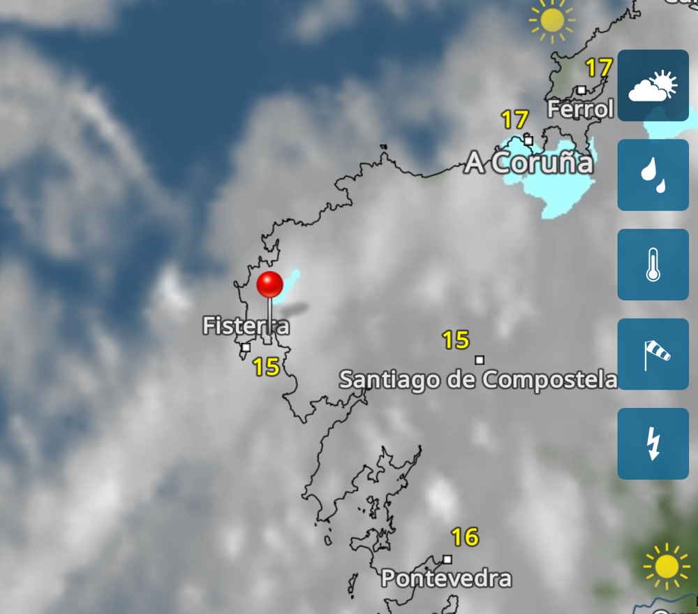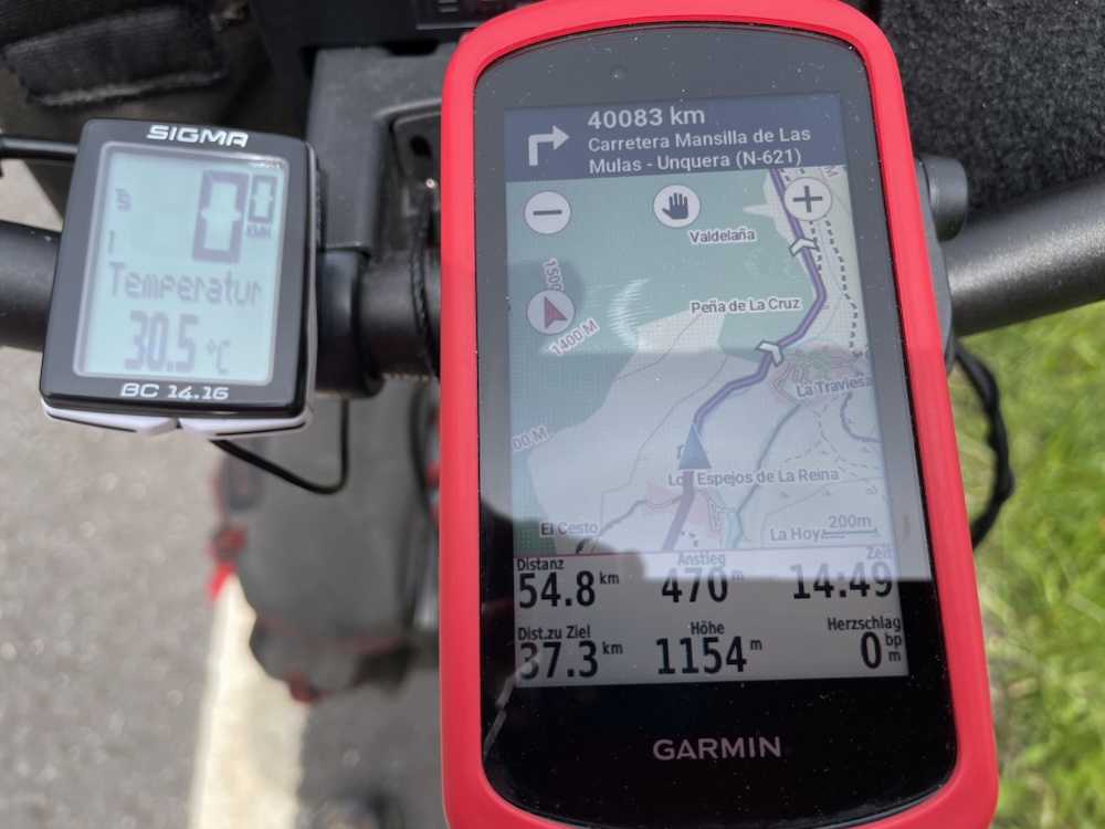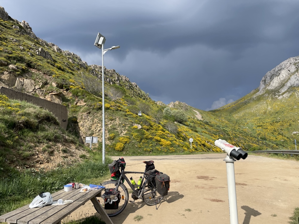 Das Wetter sieht ganz ok aus. Es könnten ein paar Tropfen fallen, aber kein großer Regen. Gestern Abend hat es ordentlich gewittert und geregnet. Da liegt jetzt ein kleiner Tiefdruckwirbel direkt vor der iberischen Halbinsel und schickt noch mehrere Tage Wolken und etwas Regen an die Küste. Zumindest wird es nicht zu heiß auf dem Rad.