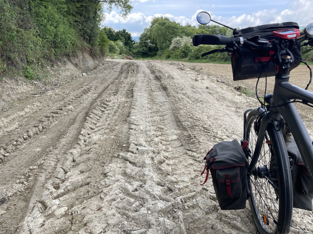 Und dann plötzlich ein super geteerter Radweg. Geht doch!!