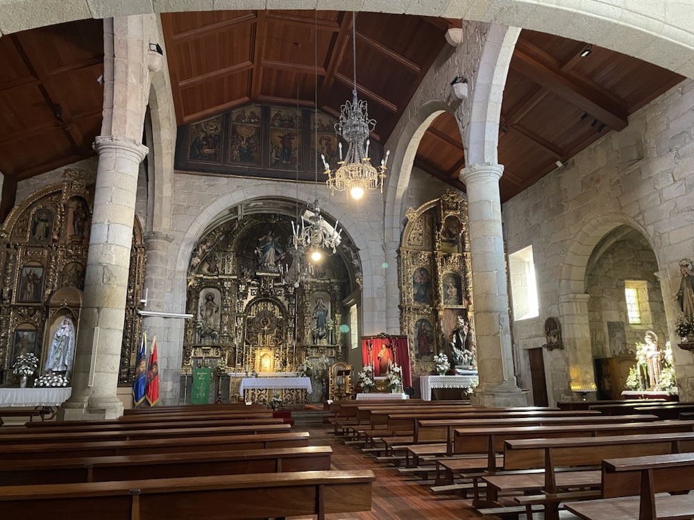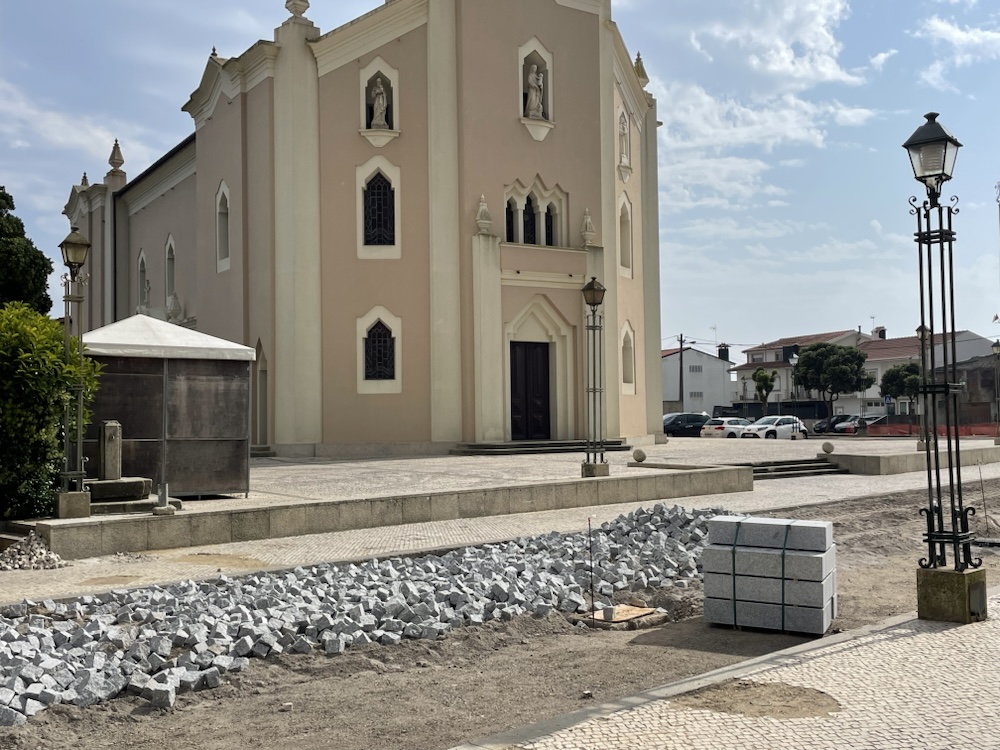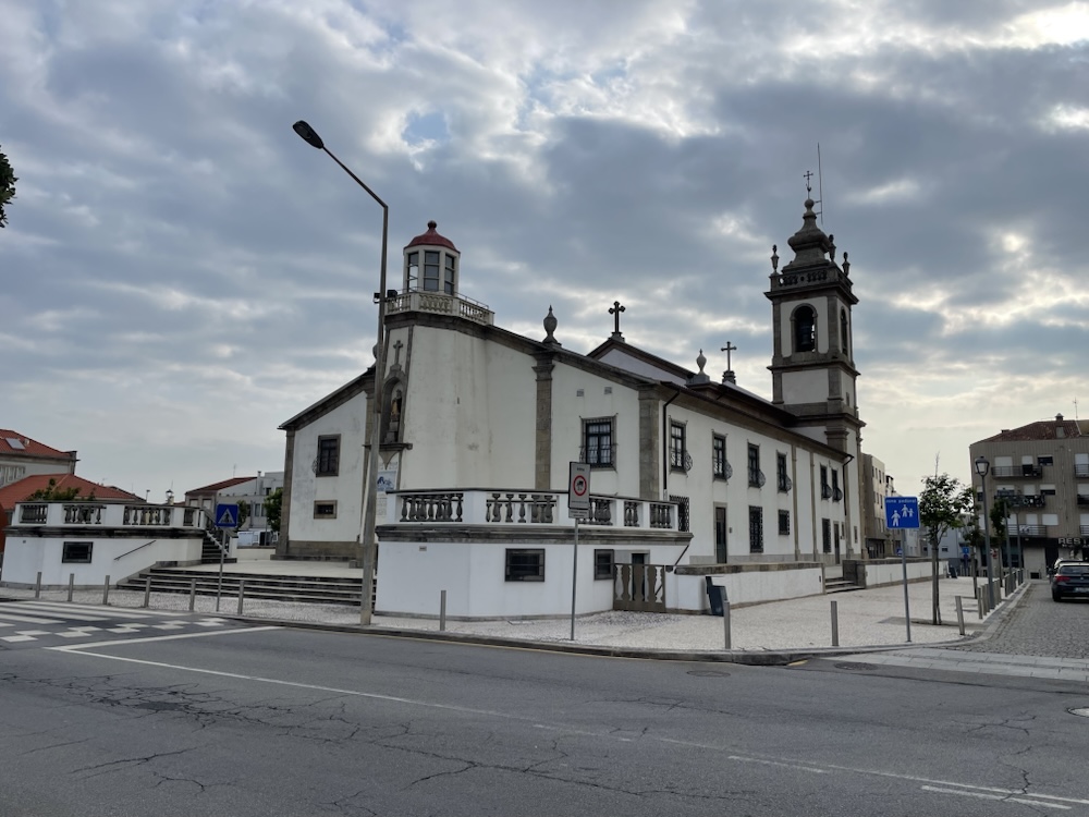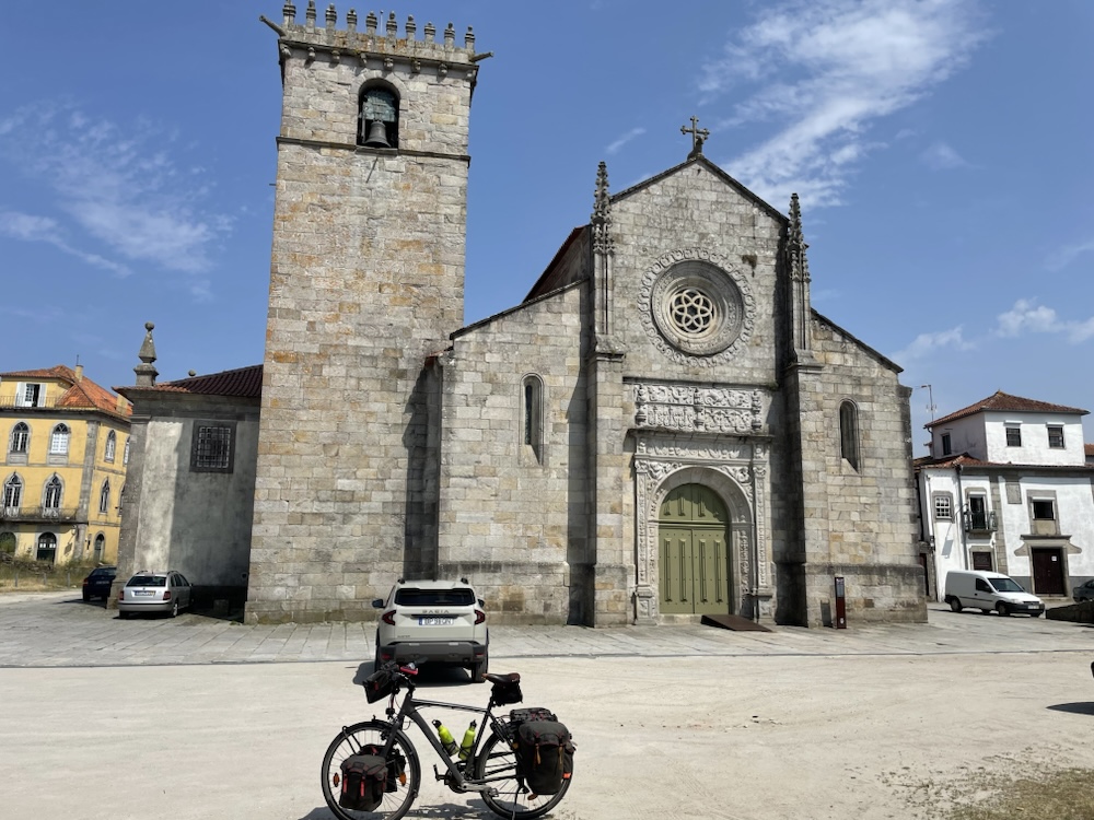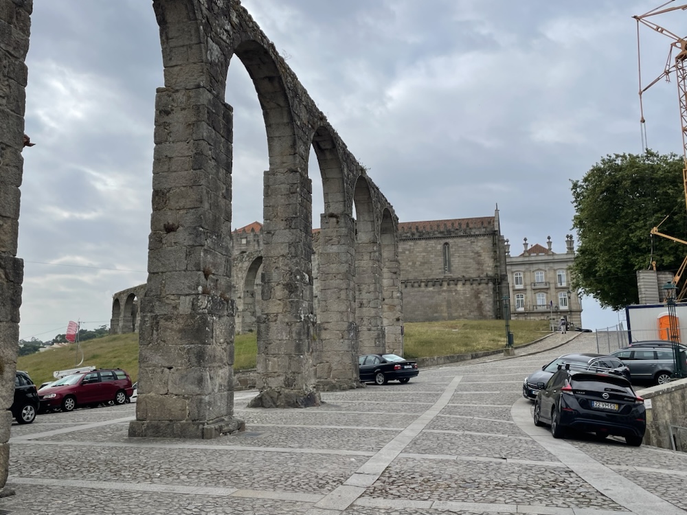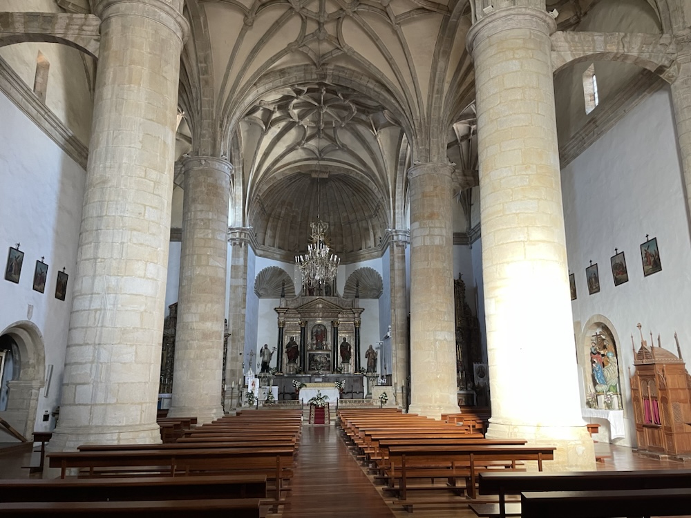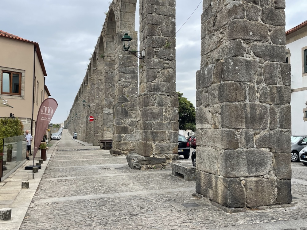 9.20 Uhr – Die Pfarrkirche São João Baptista, erbaut um 1500. Rechts erkennt man schon die Bögen eines Aquädukts. Zu dem fahre ich auch noch.