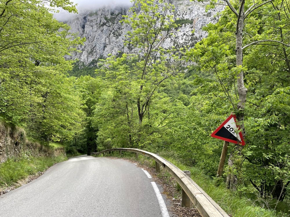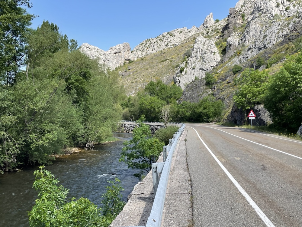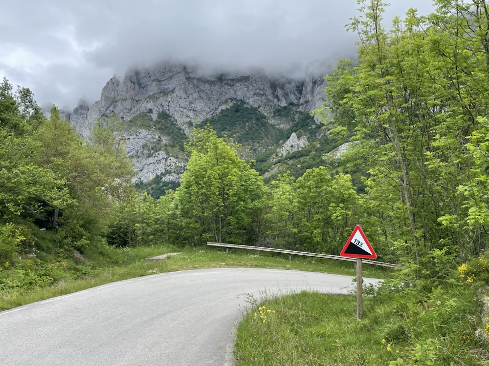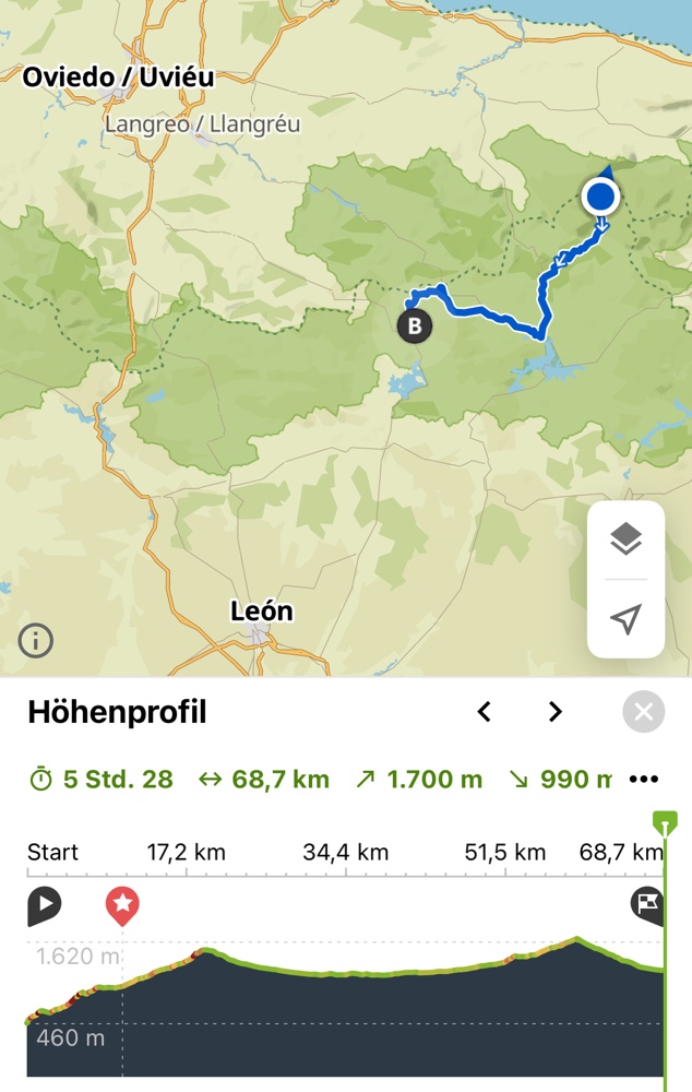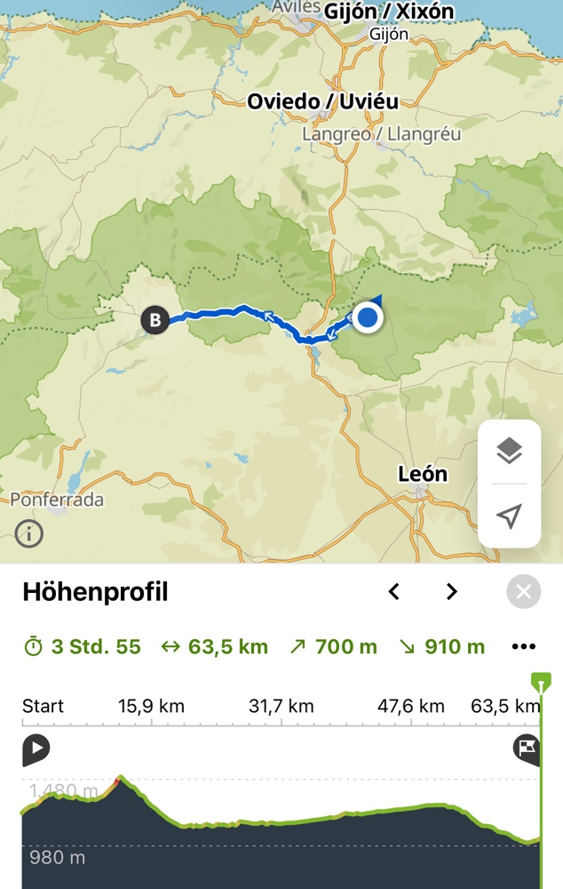 13. Februar – Ich habe vorgestern über Booking ein Zimmer in Caín de Valdeón gebucht, mitten in den Picos de Europa, neun Kilometer nördlich von Posada. Von den fünf Unterkünften in Posada, die ich vor fünf Tagen angeschrieben hatte, hat noch keine reagiert. Gerade als ich die Buchung abgeschlossen hatte, fiel mir auf, dass der Höhenunterschied nicht unproblematische 50 Meter Anstieg ausmacht, sondern 500 Meter relativ steile Abfahrt hinunter in die immer enger werdende Schlucht des Valdeón. Das ist ok am Abend, macht aber am nächsten Tag die Etappe von 1200 Metern auf 1700 Meter Anstieg sehr herausfordernd.