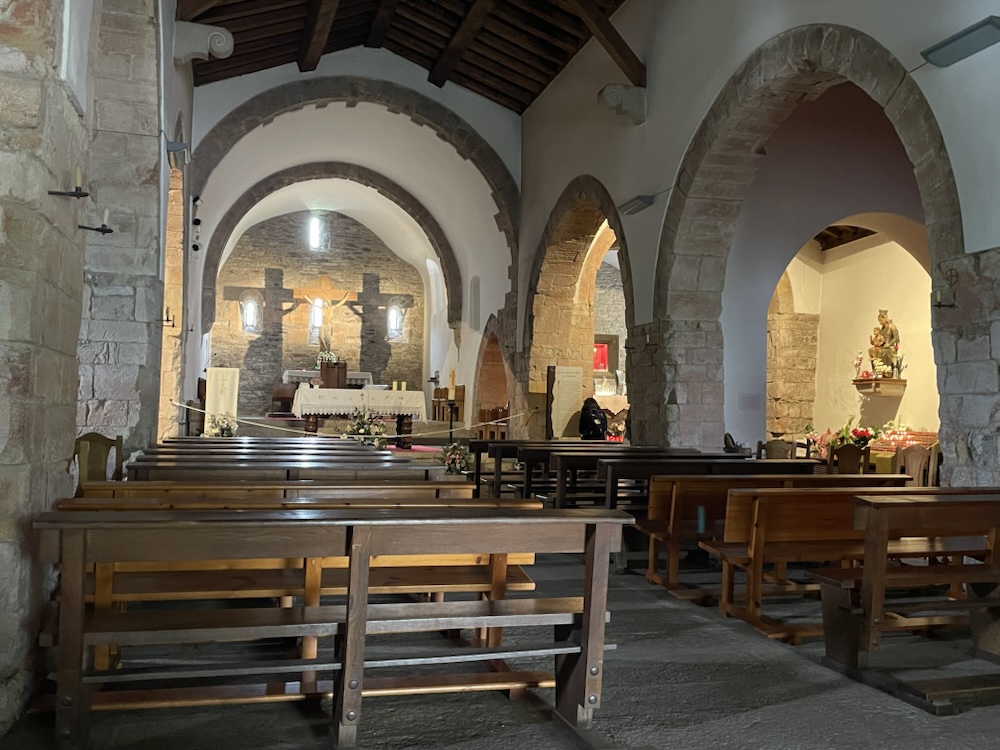 Der Boden ist ganz aus langen Holzdielen, ungewöhnlich für eine Kirche.