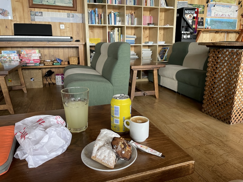 15.07 Uhr – Im der Bar Tabac gab es Kaffee und ein letztes Pain-au-Chocolat: genial!