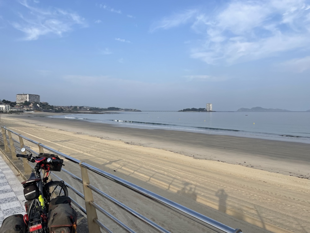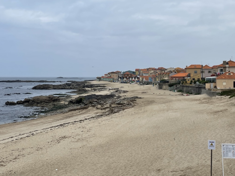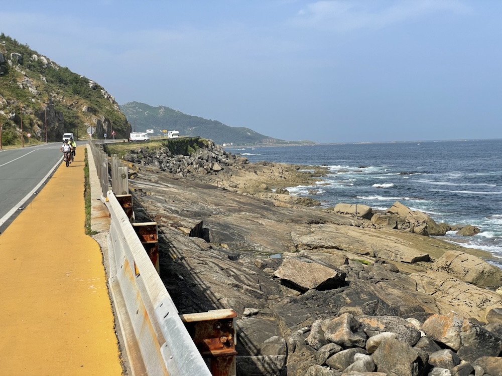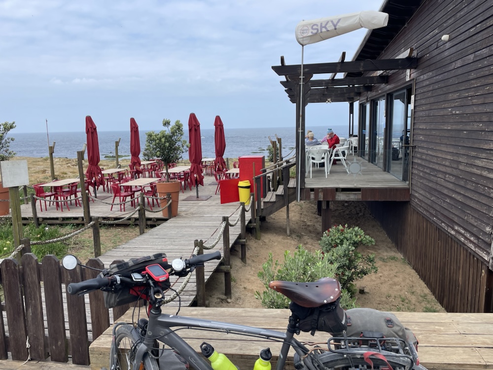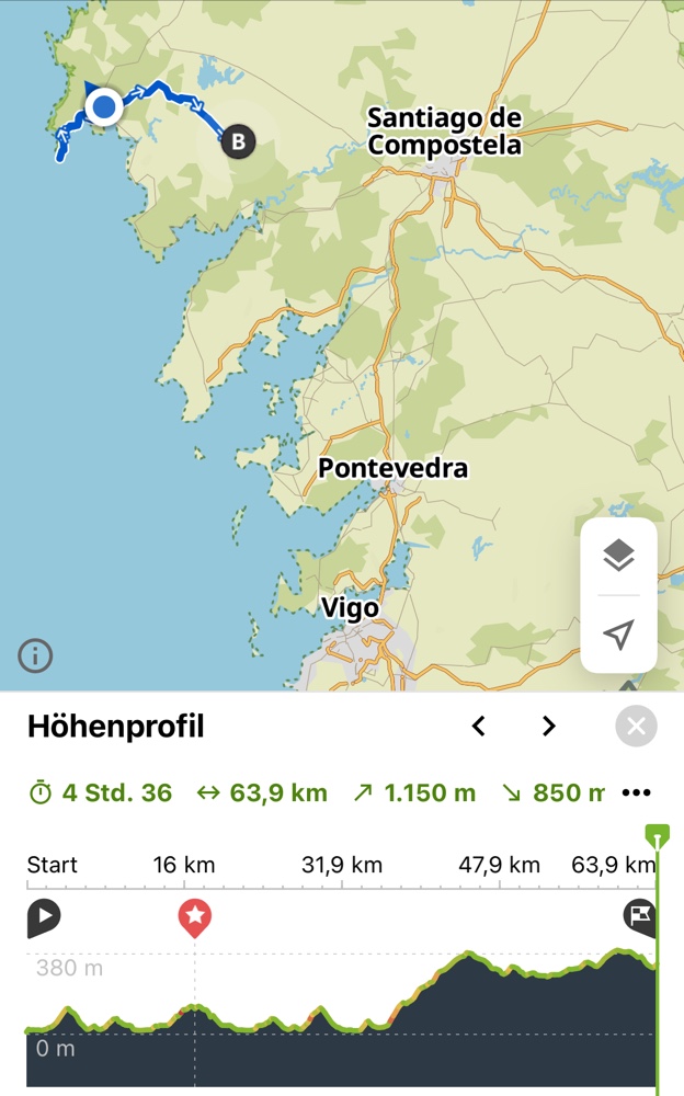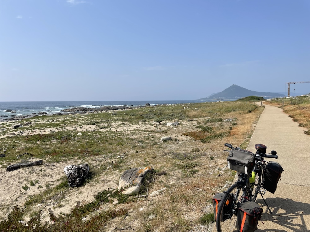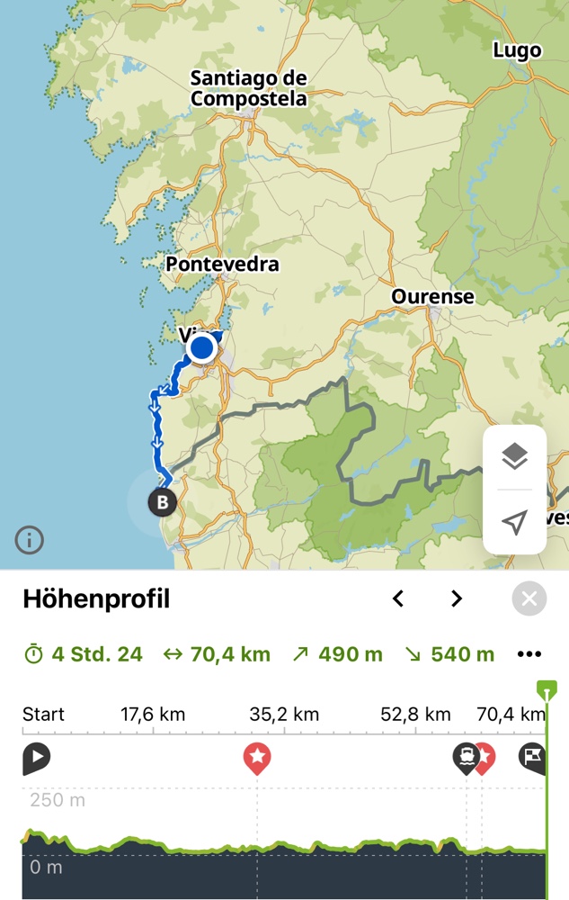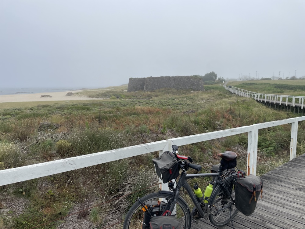 Die heutige Etappe ist wieder sehr flach. Nur am Ende geht es in Porto anscheinend etwas bergauf. Die Strecke führt die ganze Zeit direkt am Meer entlang. Mal gespannt, wie man sie fahren kann. Erstmal habe ich wieder Gegenwind.