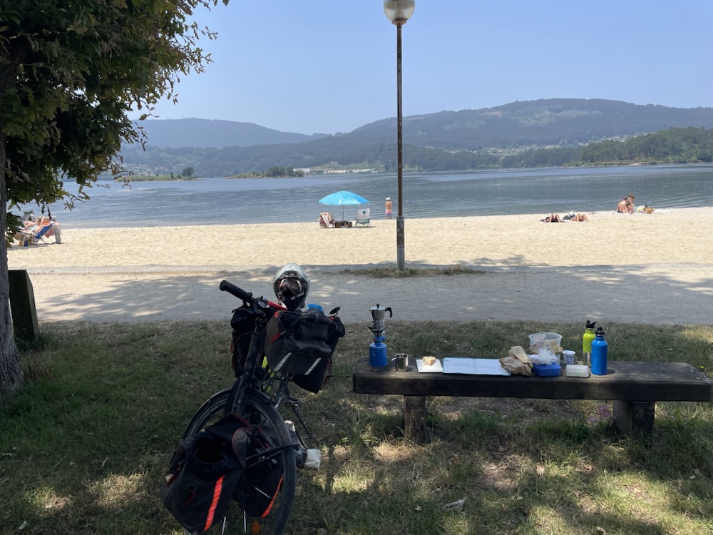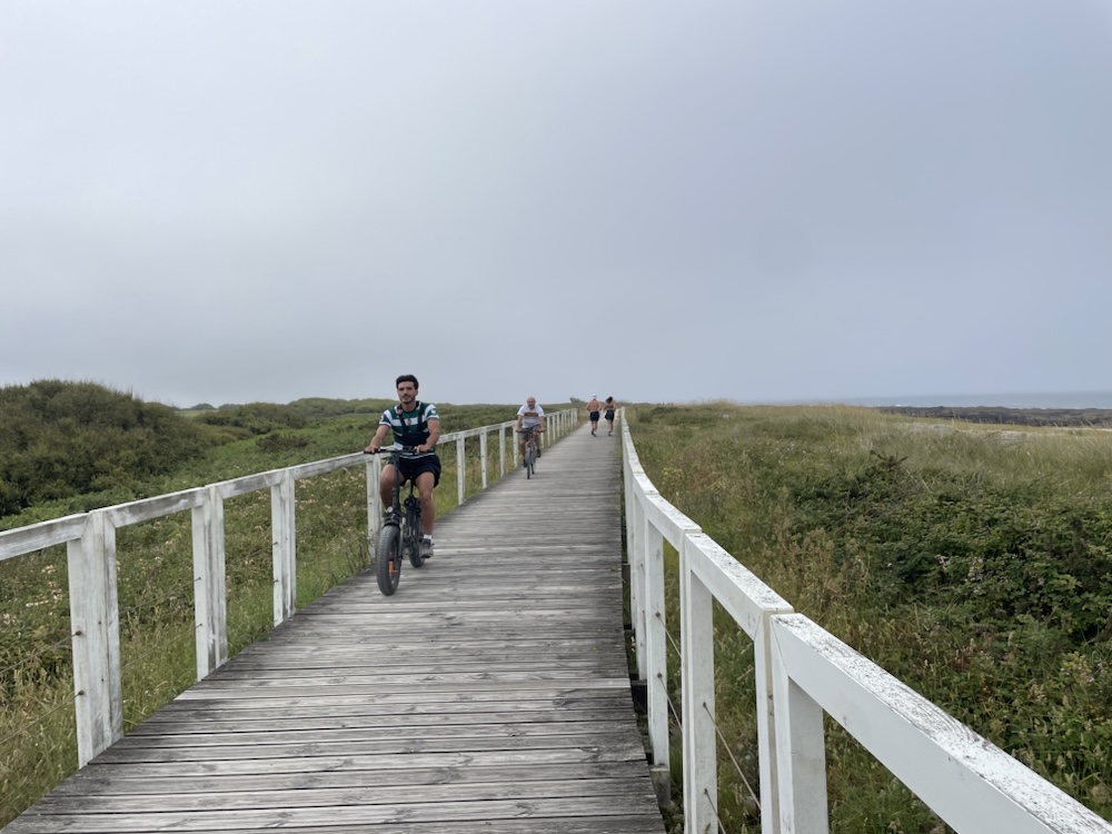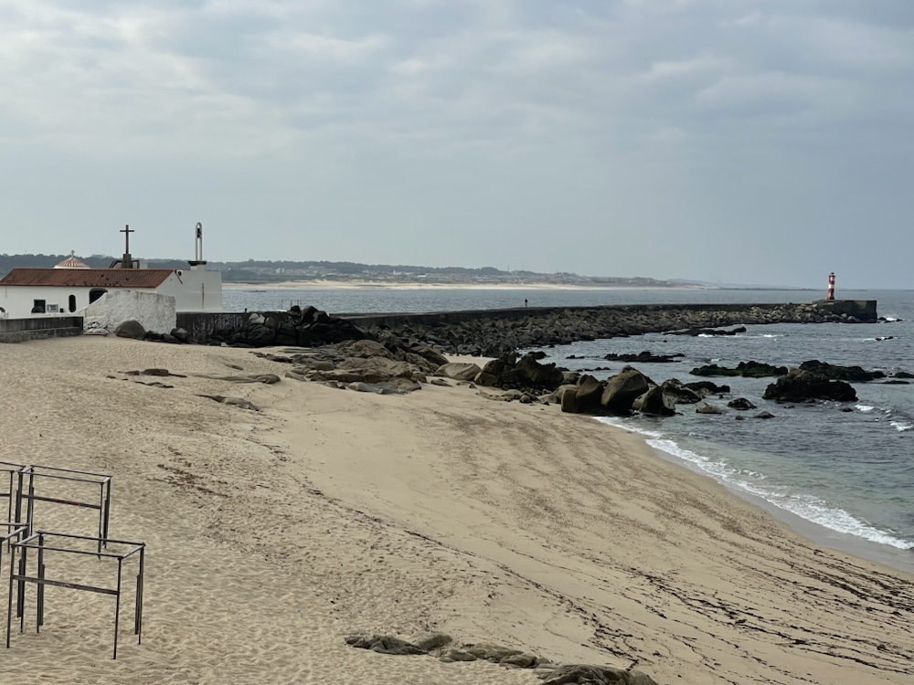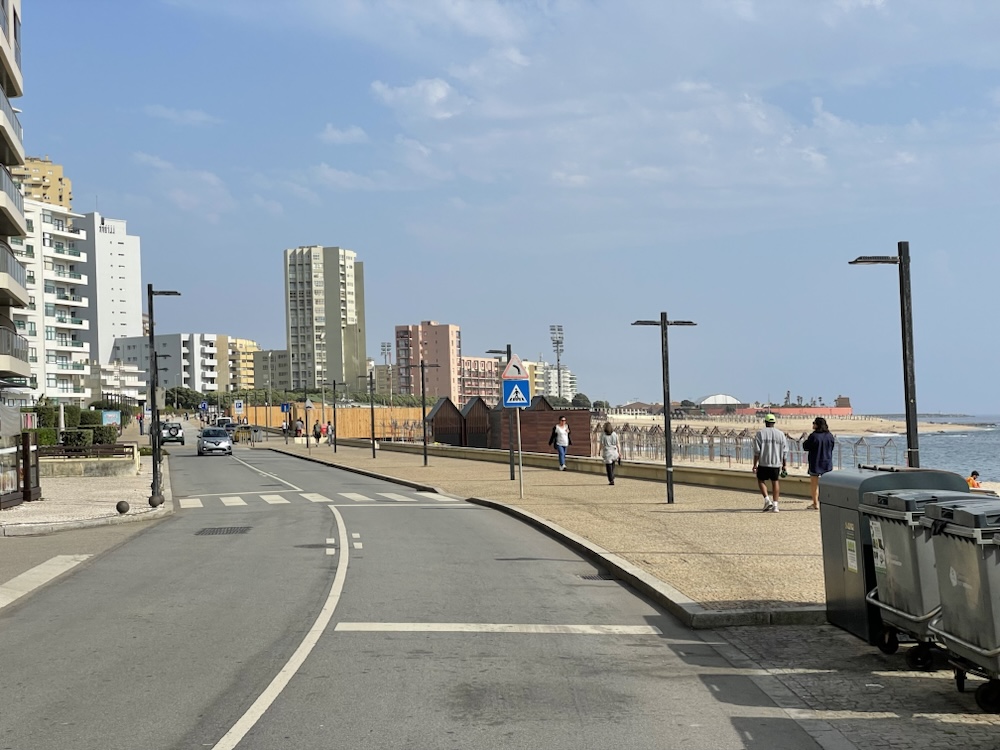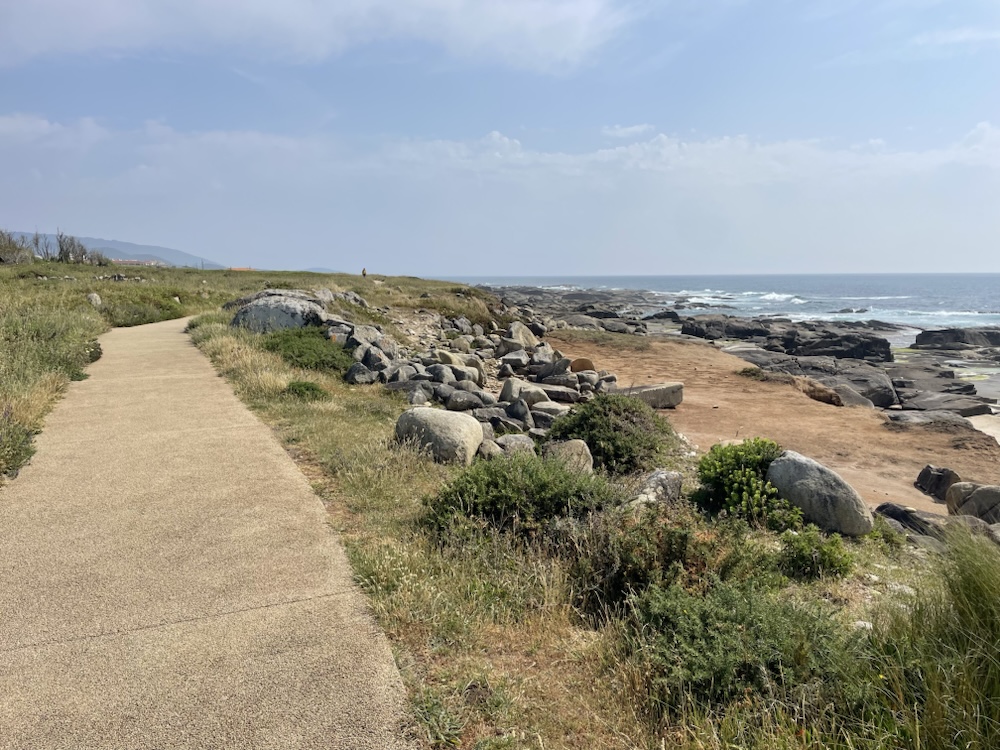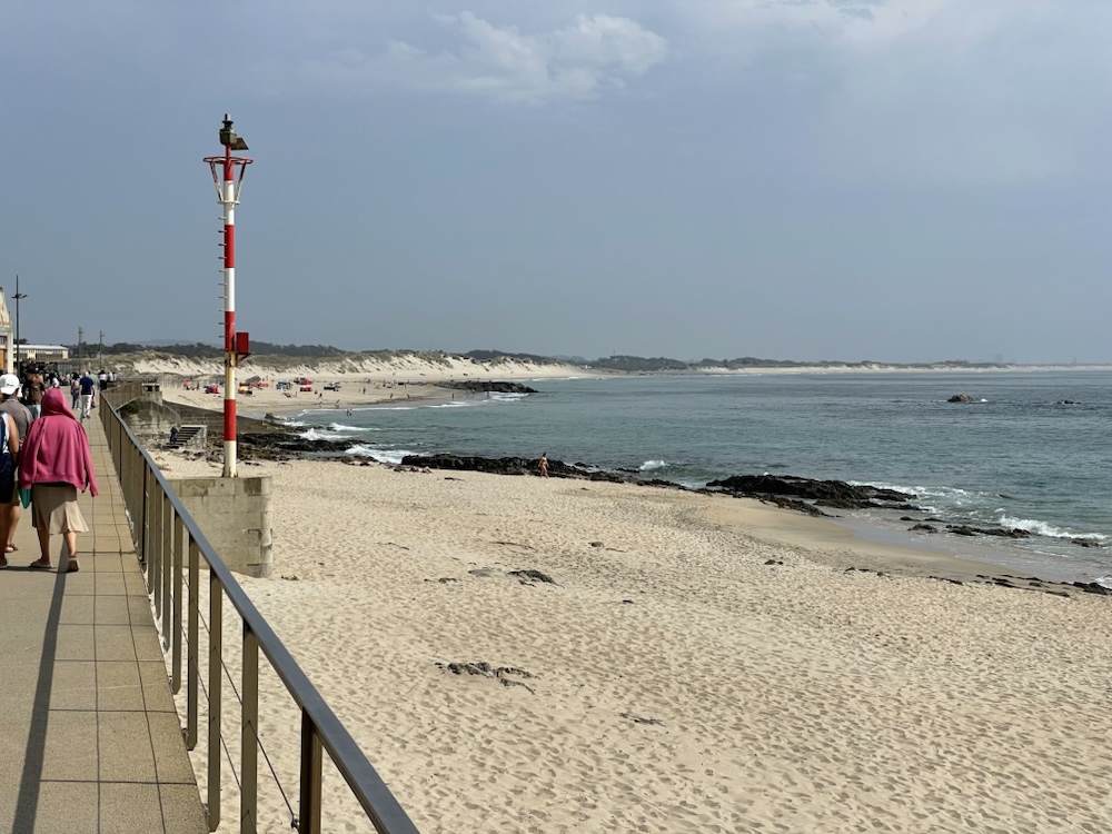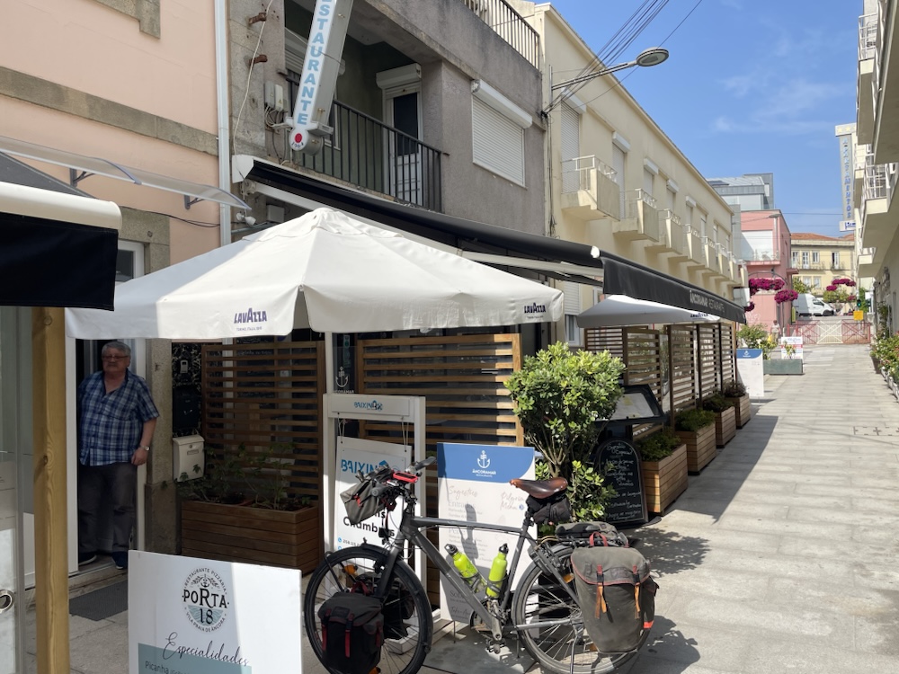 Die heutige Etappe ist wieder sehr flach. Nur am Ende geht es in Porto anscheinend etwas bergauf. Die Strecke führt die ganze Zeit direkt am Meer entlang. Mal gespannt, wie man sie fahren kann. Erstmal habe ich wieder Gegenwind.