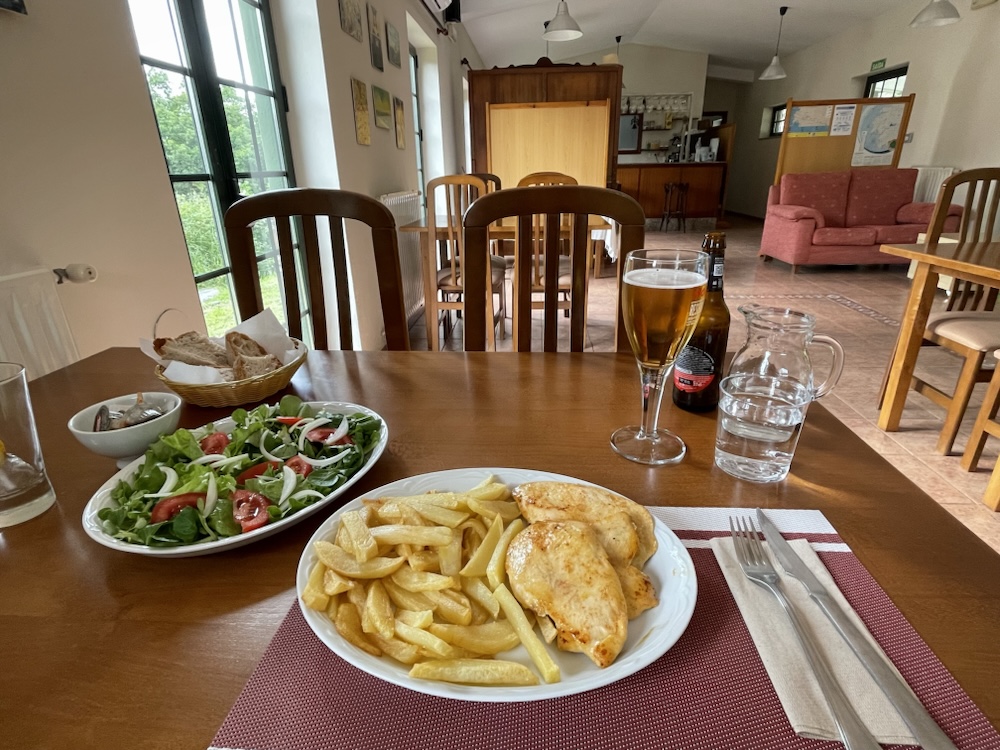 Meine etwas genervte Stimmung von heute Vormittag ist verflogen. In gespannt, was mich morgen erwartet. Es wird wohl wieder nur um die 20° C warm werden und Wind von Süden, also von vorne geben. Wahrscheinlich auch viel Kopfsteinpflaster, darauf muss ich mich einfach einstellen. Für 84 Kilometer werde ich also eher zwölf als zehn Stunden brauchen. Vielleicht hilft es etwas, wenn ich mir das vorher klarmache.