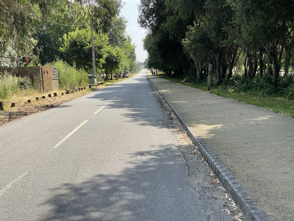 Keine Ahnung, ob es hier einen Radweg gibt. In der engen Straße wird brutal überholt.