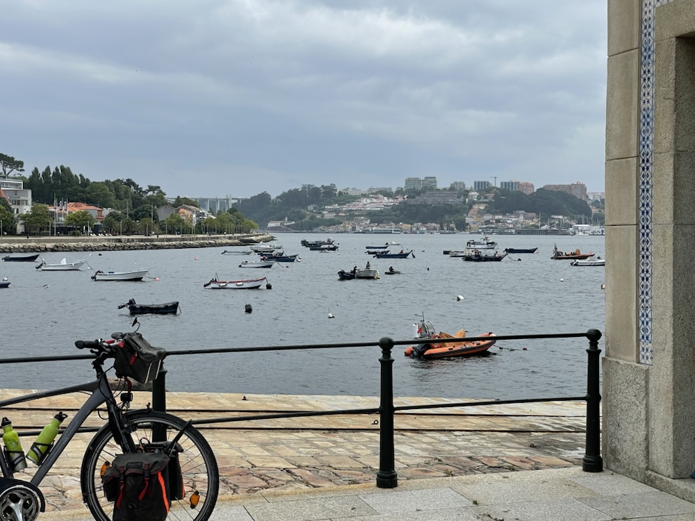 13.14 Uhr – Vor mir die Mündung des Rio Douro, der von Porto herunterkommt. Noch 8 km bis zur Unterkunft. Flussauf könnte ich Rückenwind haben.