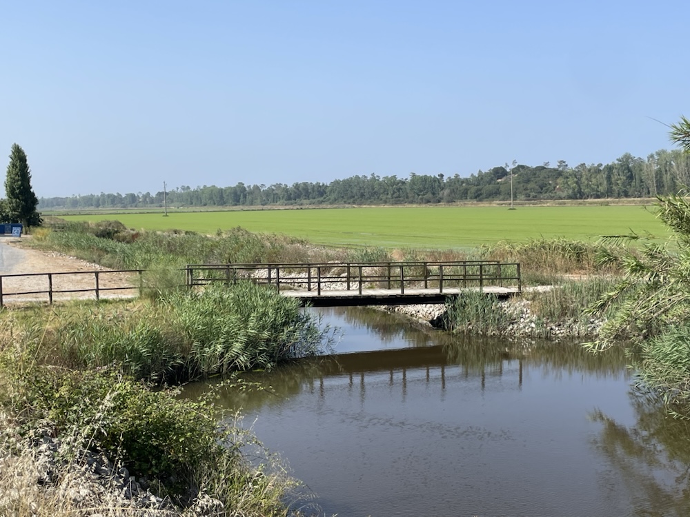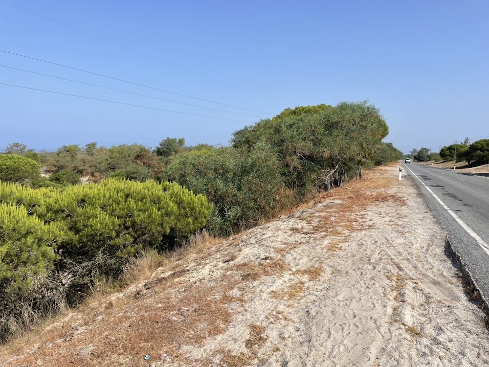 9.41 Uhr – Links, beim Blick zurück, halten Bäume den Sand fest. Im Dunst ist die Serra noch ganz schwach zu sehen. Auf Kilometer 19.