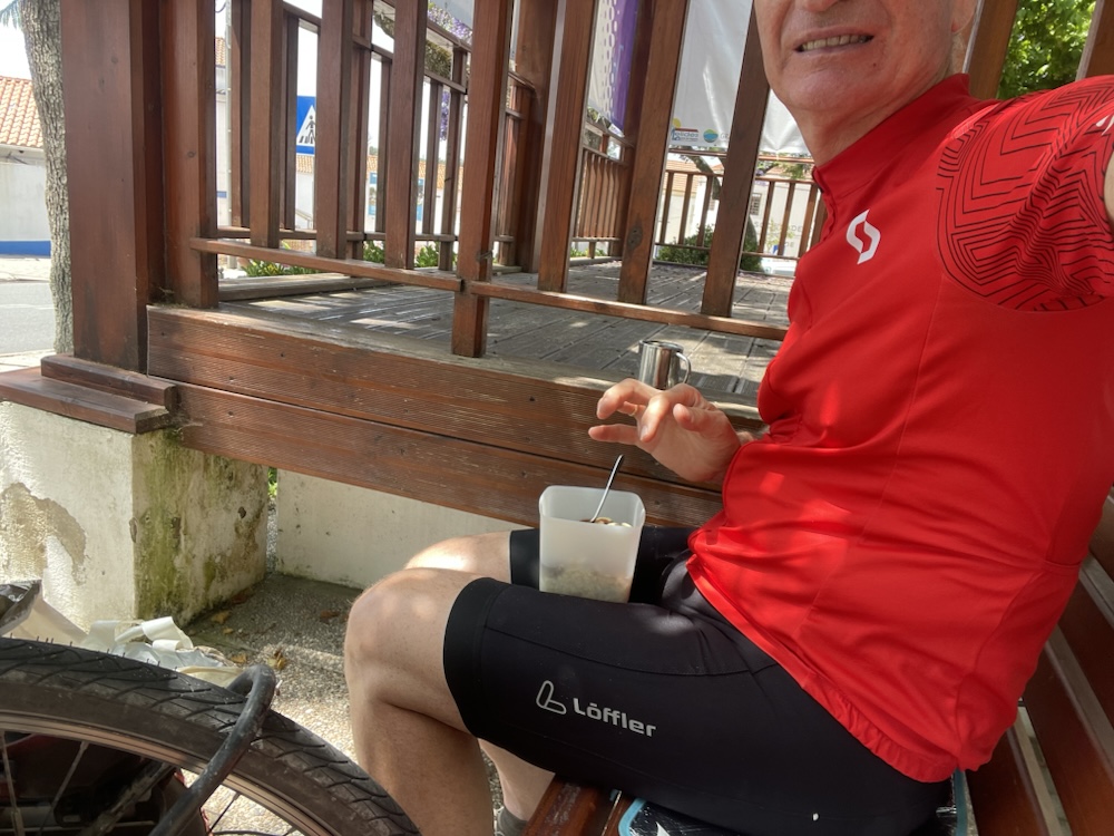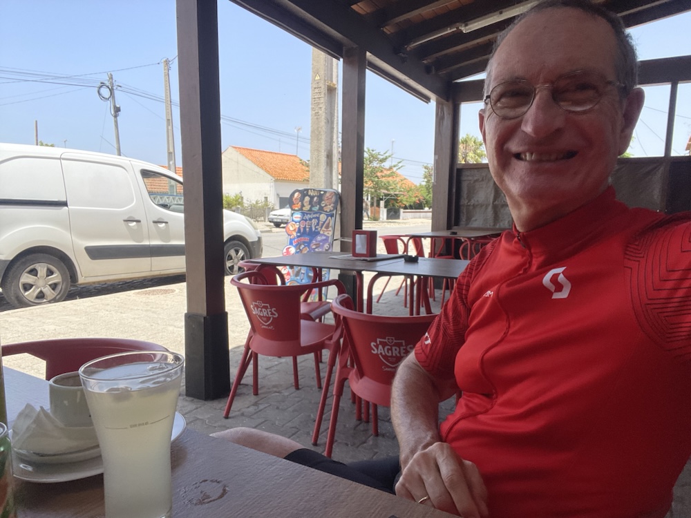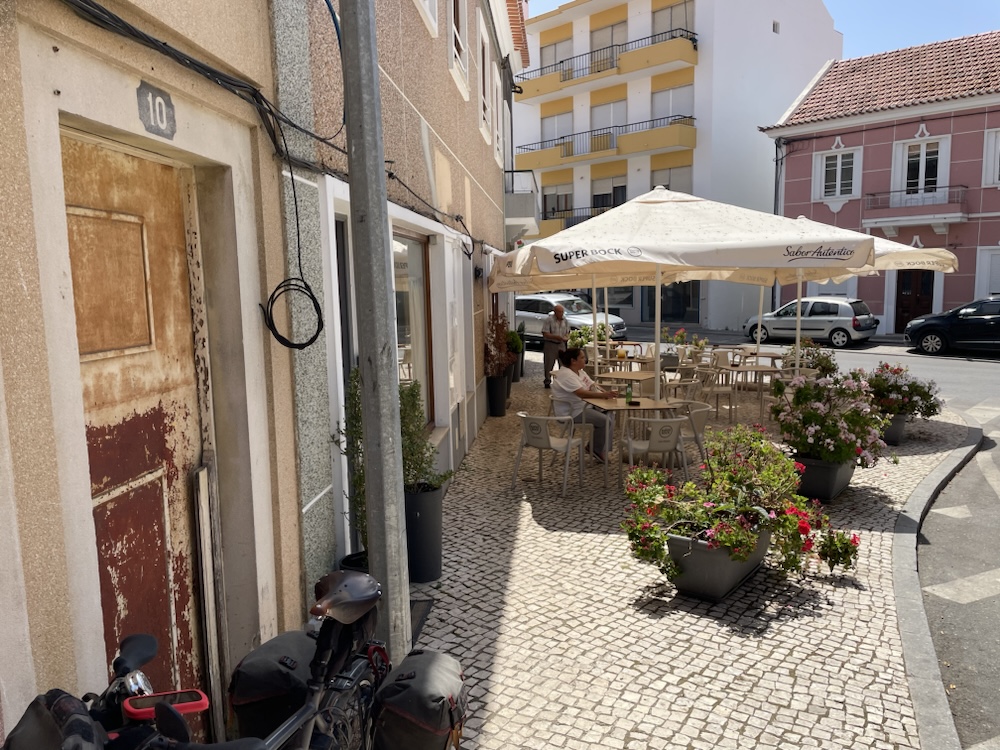 11.01 Uhr – Kaffee, Limo und Pastei da Nata in Carvalhal. Weil es auf der Schnellstraße gerade so gut lief, bin ich zuerst an der Abbiegung vorbeigefahren und musste mir einen neuen Weg in den Ort suchen.