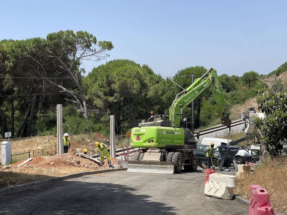 14.44 Uhr – Juchuh, ich bin durchgekommen! Auf meiner Seiten standen auch noch zwei Männer. Einer fragte auf Englisch, ob ich rüber wolle. Klar! Er meinte, das sei kein Problem, nur auf einen durchfahrenden Zug müsse ich genau schauen. Alle zehn Mann haben kurz mit Baggern und Schaufeln und allem innegehalten, um mich durchzulassen!