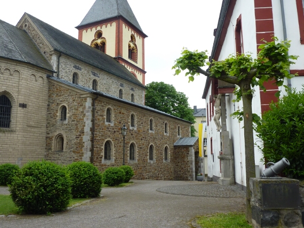 13:50 Uhr – Rast an Sankt Clemens, einer romanisch gotischen Friedhofskirche, die einsam zwischen Bacharach und Bingen steht. Wir sitzen unter einer Weide im Schatten auf einer Bank und schauen auf den Rhein und den Strom der vorbei fahrenden Radfahrer. Das geschmierte Brot war lecker. Jetzt fehlt der Kaffee, für den ich aber auch noch bis Bingen fahre.