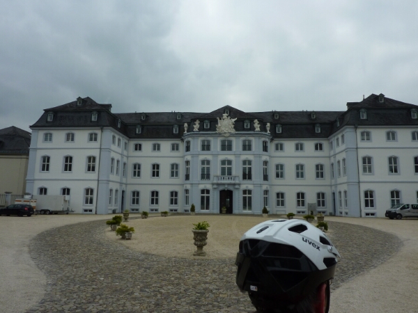 14:15 Uhr – Mittagspause am Schloss Engers in der Eisdiele. Sowohl das Schloss als auch das Spaghettieis sind so, wie man es sich vorstellt. Es ist weiterhin eher diesig als sonnig. Wir haben gut 58km zügig bewältigt. Das Rad macht unerklärliche Geräusche, vielleicht ist es schwanger, meint Thomas. (Echt jetzt?).
