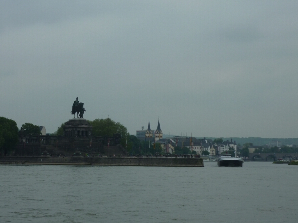 15:45 Uhr – Am Deutschen Eck mit vielen anderen Radreisenden. Hier wollen wir einen Radladen aufsuchen und eine längere Sattelstütze für Thomas kaufen.