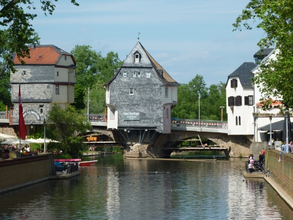 Dort aber endlich gab es Kaffee und Kuchen. Wir sind über die berühmte Nahebrücke mit den Brückenhäusern. Hat mir gut gefallen.