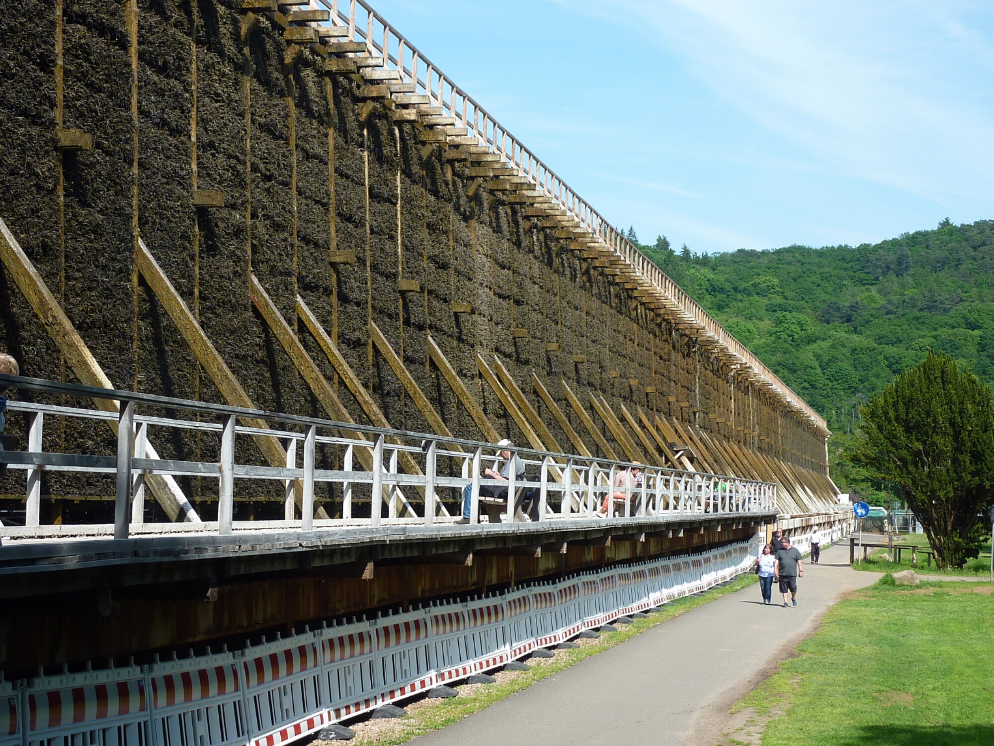 Der Radweg führt danach direkt an der Nahe entlang zu den wirklich beeindruckenden riesigen Gradierwerken im Park.