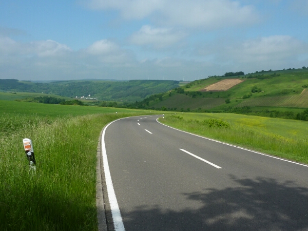 Die meiste Zeit sind wir dann der Bundesstraße gefolgt, bergauf und bergab, mit Radweg und ohne. Die letzten 25km führte die Strecke durch das Tal des Hochspeyer- und des Speyerbachs auf der Bundesstraße 39 hinunter nach Neustadt an der Weinstraße.