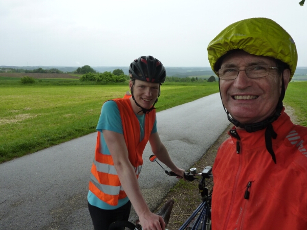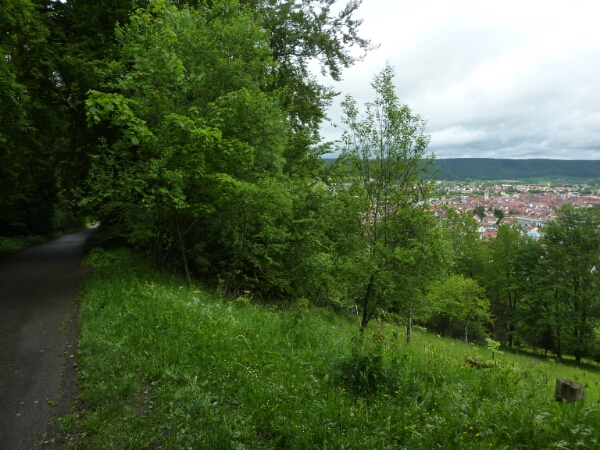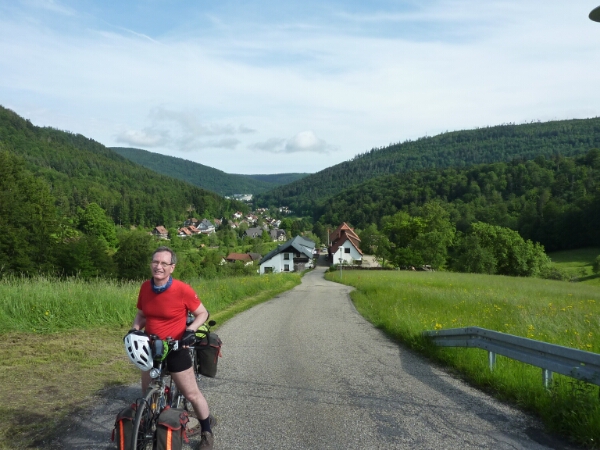 Tuttlingen haben wir zügig durchquert und sind mutig in den letzten Anstieg. Er war mit 10-12% schon sehr steil, aber fahrbar. Oben mussten wir durch zwei tiefe Dellen. Eine hat uns mit knapp über 60 km/h die Höchstgeschwindigkeit der ganzen Tour beschert.