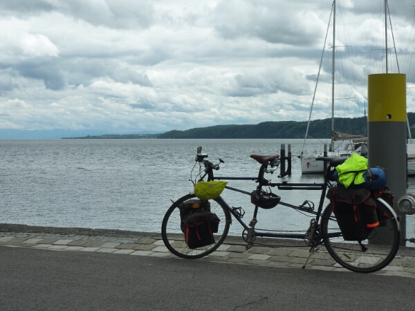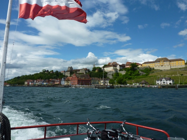 Wir hätten den Zug von Ludwigshafen nach Friedrichshafen nehmen können, da wir rechtzeitig am Bahnhof waren. Aber die laue Luft, der Sonnenschein und der Rückenwind haben uns davon überzeugt, die 20 km bis Meersburg in einer Stunde zu fahren.