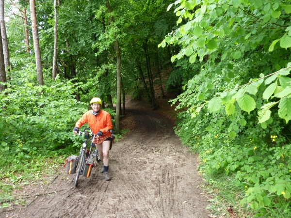 Vor Überlingen waren Bundesstraße und Radweg wegen Erdrutsch gesperrt und wir mussten, wie viele andere Radler, den steilen matschigen Waldweg hinauf und hinunter.