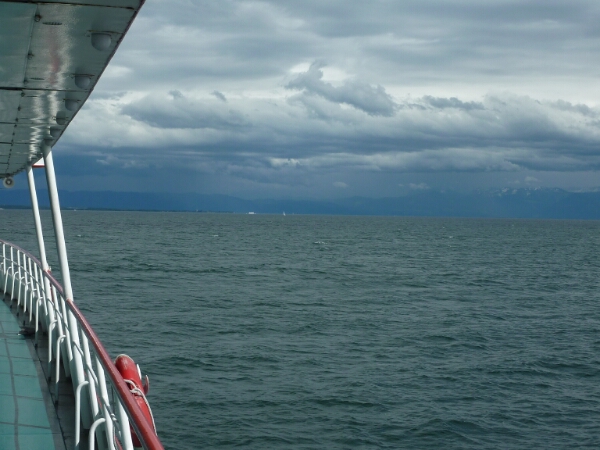 16:00 Uhr – Wir fahren auf ein Gewitter zu, dass im Süden in den Bergen hängt und das Schiff schaukelt manchmal etwas. Das Panorama ist umwerfend!