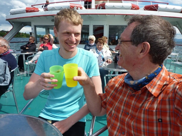 Alles hat super geklappt und auf dem Boot gab es den wohlverdienten Sekt, den wir in der Bäckerei in Spaichingen gekauft hatten.