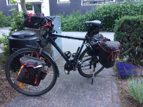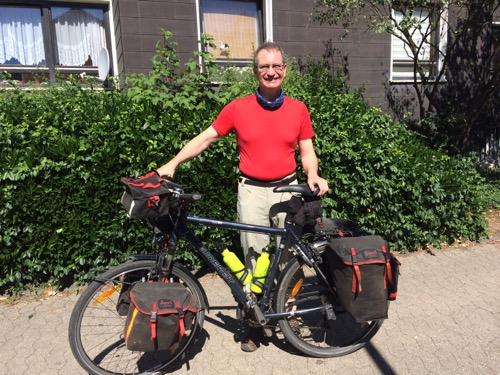 Das 7 km lange Einrollen zum Bahnhof Bonn lief problemlos. Das Rad ist mit den 20 kg Gepäck sauschwer, bergab geht aber super!