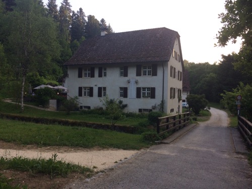 20:40 Uhr – Nach der rasanten Schussfahrt ging es durch das enge Tal der Lucelle auf einer ruhigen Landstraße zum Hotel. Die Straße liegt in Frankreich, zum Hotel auf der anderen Bachseite, musste ich über die Grenze.