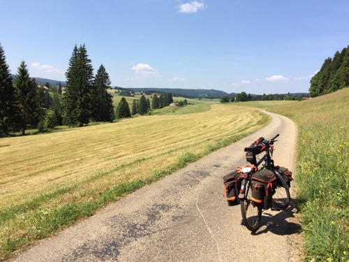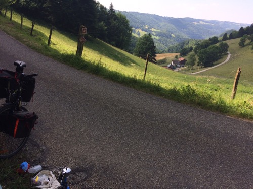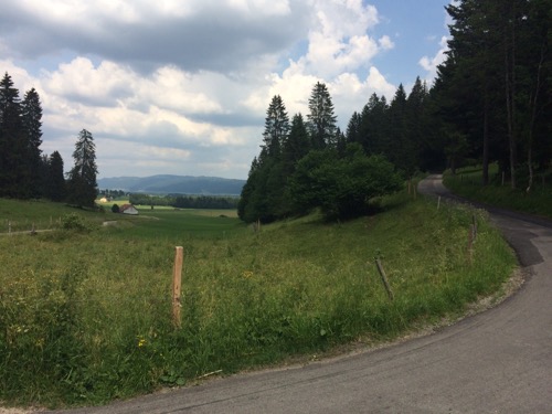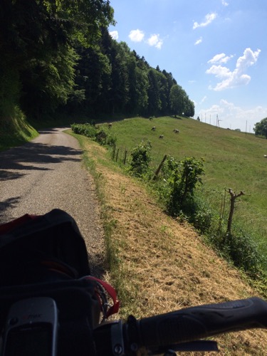 16:10 Uhr – Sieht aus wie oben, aber natürlich ging es hinter der Kurve weiter rauf, und zwischendurch mit 12 %. Diese Jura-Leute sind echt hart drauf!