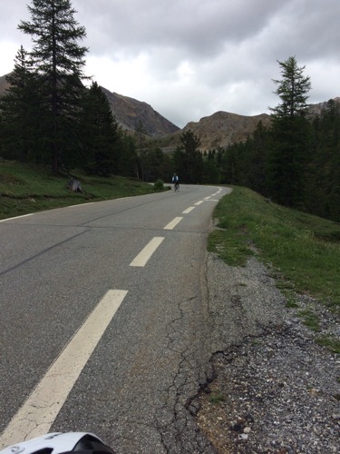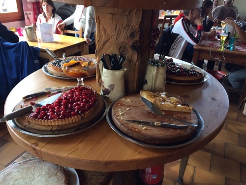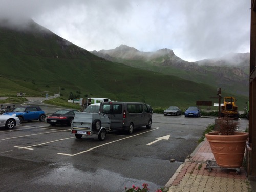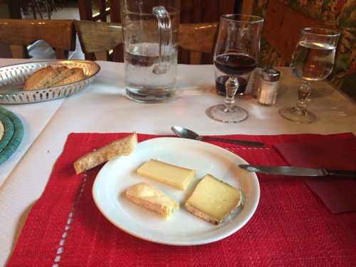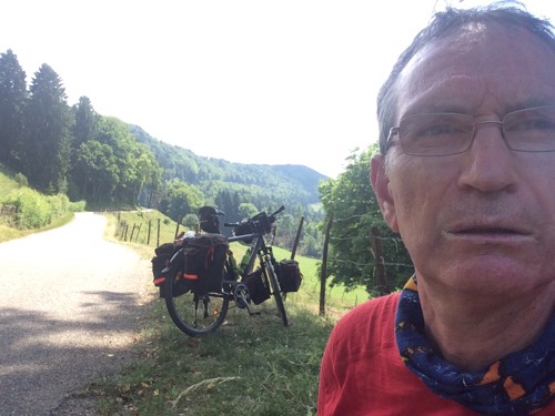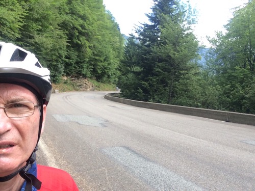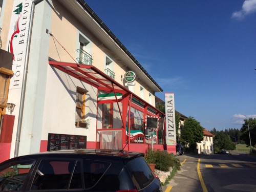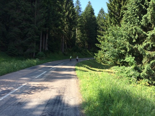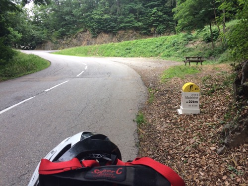 Die Gegend ist französisch, also gibt es Wasserkaraffen. Ein Bier würde mich jetzt umhauen. Mit den beiden Radlern habe ich mich während des Essens noch sehr nett von Tisch zu Tisch unterhalten. Er fährt mit Motorunterstüzung, sie nicht. Den Anstieg fanden sie auch sehr knackig.