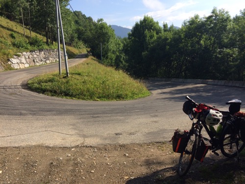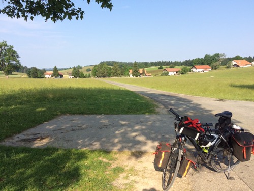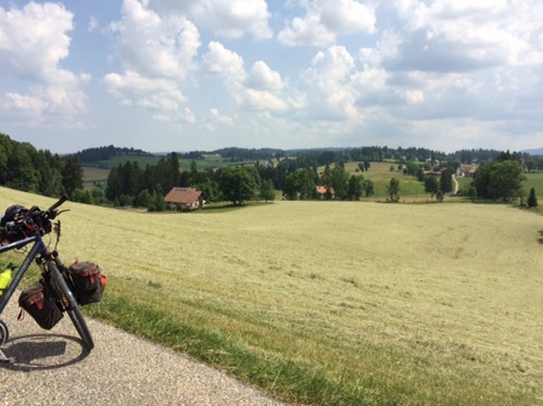 17:00 Uhr – Gerade haben mich die zwei Radler überholt, die schon heute Morgen auf der gleichen Strecke waren. Sie übernachten im gleichen Hotel. Ich habe aber noch diese Aussicht genossen.