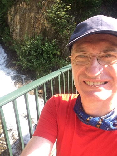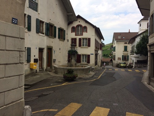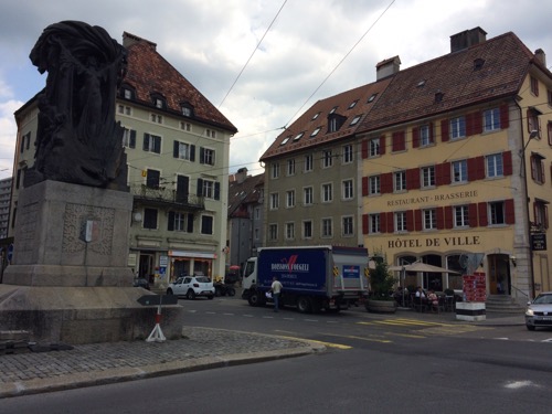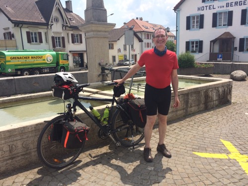 Bei der Abkühlung an der Dorftränke in La Sagne (Nudeln?) kam ein netter älterer Herr mit Barette und hat mir angeboten, ein Foto von mir zu machen.