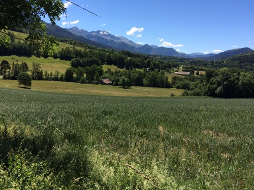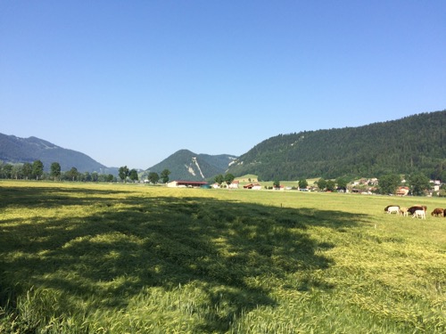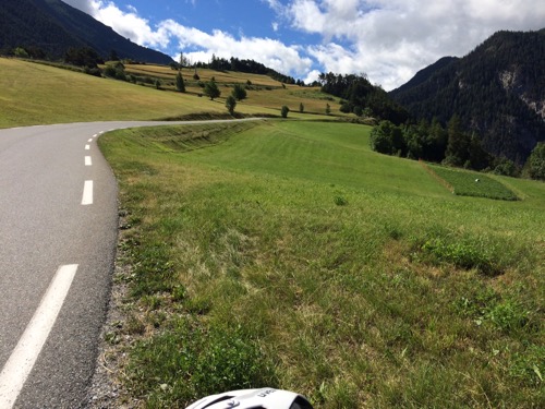 13:45 Uhr – Wieder ein weites grünes Tal. Überall wird Heu gemacht und ich muss oft den großen Anhängern Platz machen. Die TraktorfahrerInnen bedanken sich aber immer sehr freundlich. Der Heugeruch ist wunderschön.
