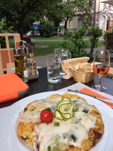 13:30 Uhr – Nach einer schönen Runde durch die Altstadt mit einem Besuch im Baseler Münster, sitze ich nun im Restaurant und warte auf das Essen.
