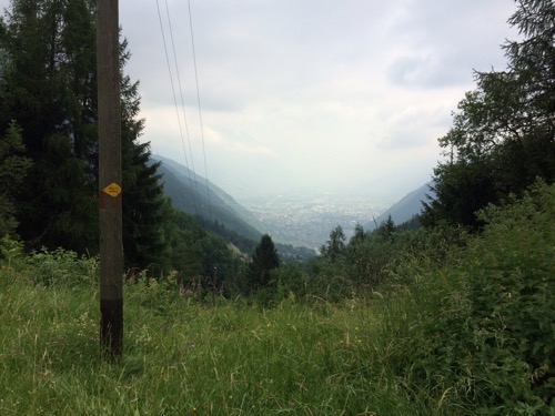 Mit meist neun Prozent ging es wirklich steil bergab. Der Blick ins Tal leider diesig.
