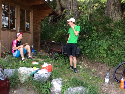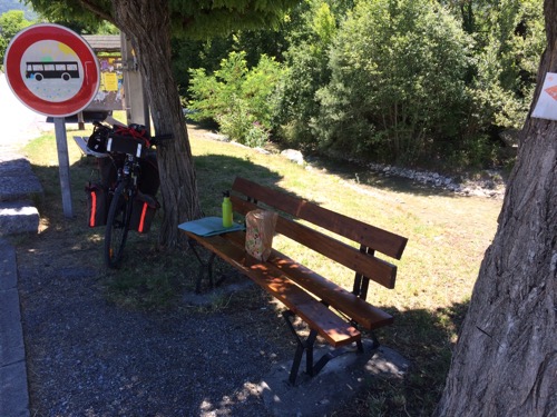 12:20 Uhr – Sitze im Schatten, der erste Tourkaffee schmeckt super! Ich habe die letzten Apfelreste gegessen und das Notfallpack geplündert. Fruti, Traubenzucker helfen gegen das Muskelzittern. Geschafft sind 24 km und 480 Hm.