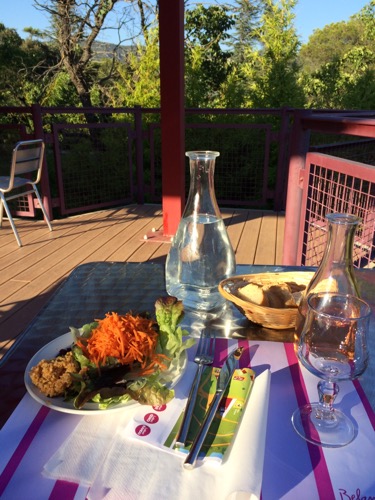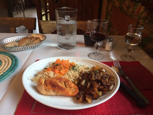 19:45 Uhr – Beim Abendessen: Auch der Wein ist im Buffetpreis drin, All Inclusive. Der Salat war schon einmal sehr schmackhaft.