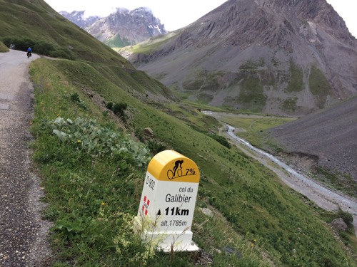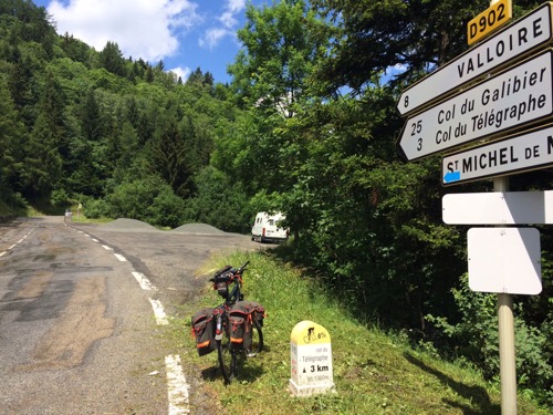 Von dort könnte ich der Autobahn entlang relativ sanft ansteigend fahren. Ich habe mir aber den Col de la Madeleine eingebaut, in knapp 40 km von 350 m auf fast 2000 m. Es folgen an den nächsten Tagen die grandiosen Alpenklassiker Col de Galibier, Col d’Izoáre, Col de Vars und zum Abschluss durch das Hochtal von Seyne und Digner-les-Bains hinunter in das Tal der Durance und die Provence. Das klingt sehr interessant, und ich würde die Pässe wirklich gerne fahren, aber nachdem ich meine früheren Radreiseberichte noch einmal gelesen habe, ist mir die Anstregung der langen Anstiege noch einmal bewusst geworden. Hinterher ist es toll, jetzt aber habe ich einen heiden Respekt vor dem selbstgesetzten Ziel und behalte mir an dieser Stelle schon einmal vor, einige der Pässe am Ende doch nicht zu fahren, zumal das Wetter mitspielen muss.