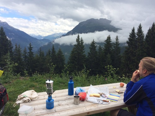 7:45 Uhr – Beim Frühstück, heute will ich deutlich früher los als gestern. Es ist wieder geniales Wetter und schon gut warm. Ich fühle ich fit, mal sehen wie es am Berg sein wird.