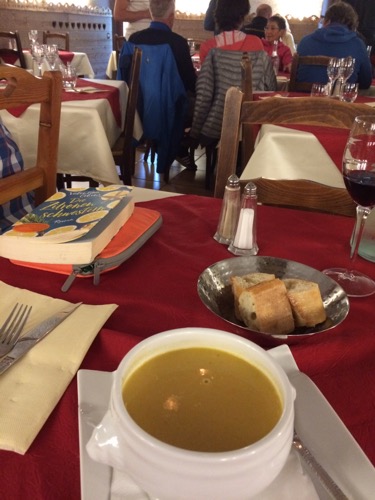 Ich habe mit 20 km und 280 Hm ca. die Hälfte für heute. Das Hotel weiß, dass ich zwischen 20 und 21 Uhr komme und Hunger haben werde. Zur Sicherheit habe ich gerade angerufen.