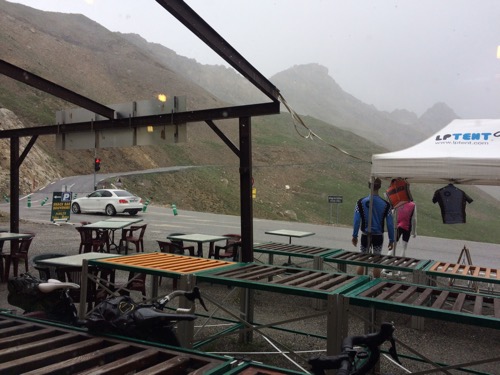 11:55 Uhr – Puh, ich bin drin, mein Rad auch. Ich kann es vom Sitzplatz aus durch die Tür sehen: sehr beruhigend! Jetzt bitte einen Kaffee!!