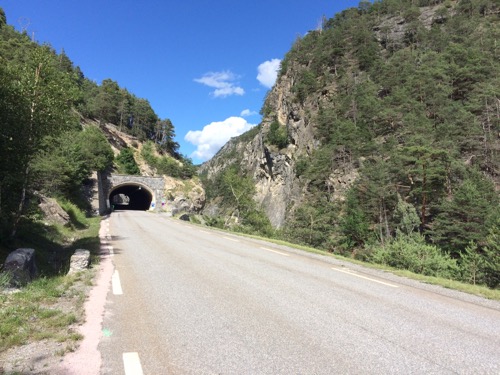 9:40 Uhr – Verwirrende Wegweiser, daher folge ich dem Navi und stehe jetzt vor diesem dunklen Tunnel. Fahre ich da rein?? Es gibt Radspuren, die hinein führen. Also allen Mut zusammennehmen und los!