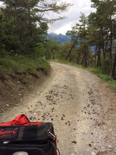 Nach dem Pass folgte eine lange ungeteerte Kammstraße durch den Wald, die weiter sanft anstieg.