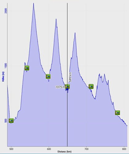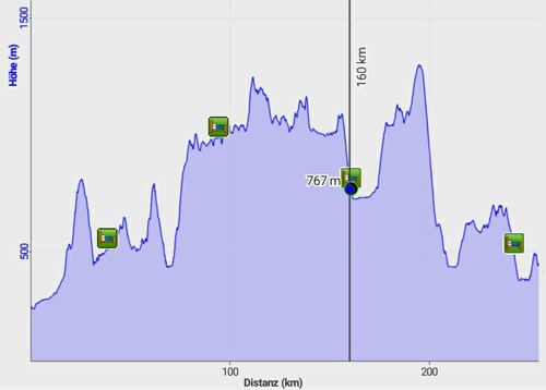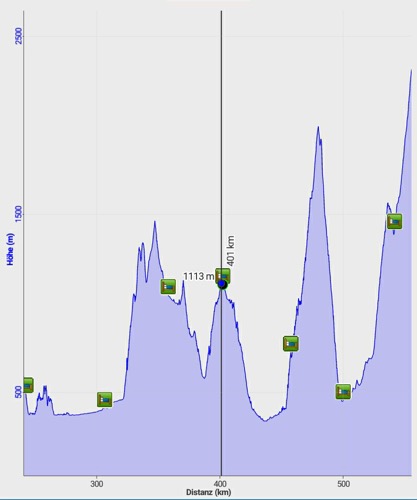 Habe jetzt 41 km und 935 Hm. Da kommt also noch was….