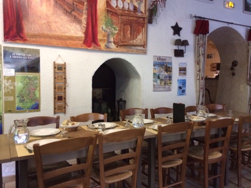 19:38 Uhr – Alle Restaurants sind heute geschlossen. Ich traf die Wirtin, sie riet zu einer Pizza vom Pizzawagen am Platz und essen auf der Hotelterrasse. Sie legt Besteck und Teller bereit und stellt Wasserkaraffen mit Eis dazu. Die Pizza ist bestellt, dauert 15min. Die Zeit reicht für eine Orangina in der Bar des Voyageurs. Alles wird gut!