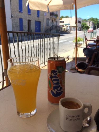 15.25 Uhr – Im Café oben in La Brianne. Habe Fanta und Café Noir bestellt. Die Stärkung brauche ich, es sind noch gute zwanzig Kilometer.