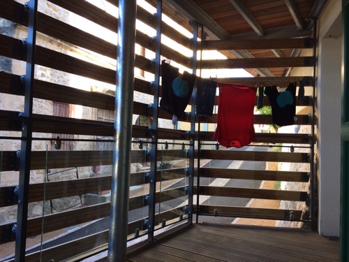18:30 Uhr – Ich sitze geduscht vor meinem Erdgeschoss-Zimmer in der Altstadt von Saint-Michel. Die gewaschenen Radklamotten hängen neben mir auf der Terrasse. Ich bin echt fertig, der Kopf brummt, noch nicht genug für eine Tablette, aber doch spürbar. Ich habe definitiv richtig Hunger und werde bald mal nach der Pizzeria am Platz suchen.