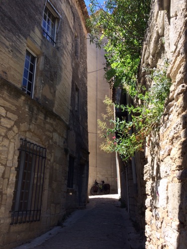 Gegen vier war ich am Bahnhof von Orange und habe mit die Fahrkarten für morgen und übermorgen gekauft. Danach bin ich durch die Fußgängerzone zum Hotel, das wir schon im April ausfindig gemacht hatten. Das Rad steht im Hinterhofgarten, ich kann es vom Zimmer aus sehen.